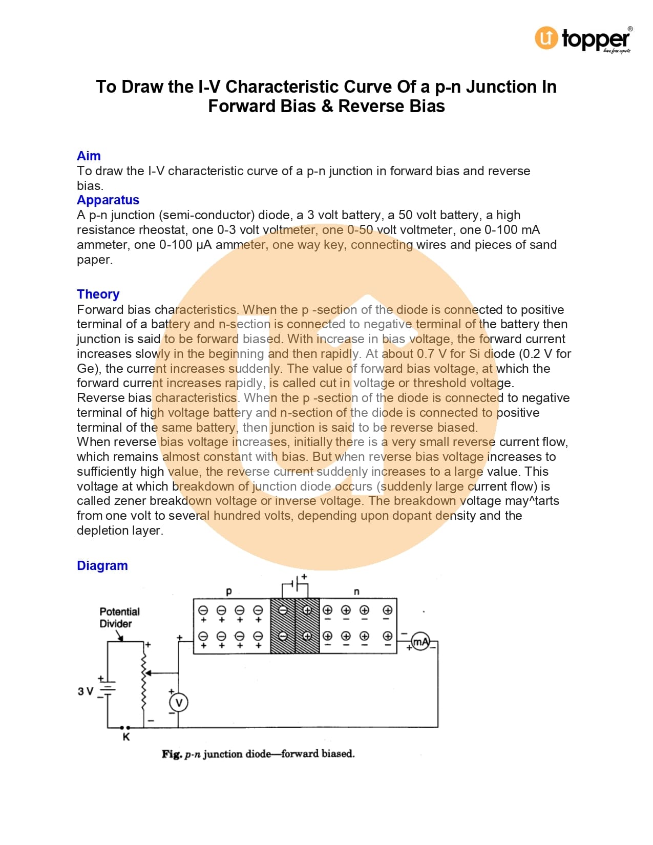 - To draw the I-V characteristic curve of a p-n junction in forward bias and reverse bias.