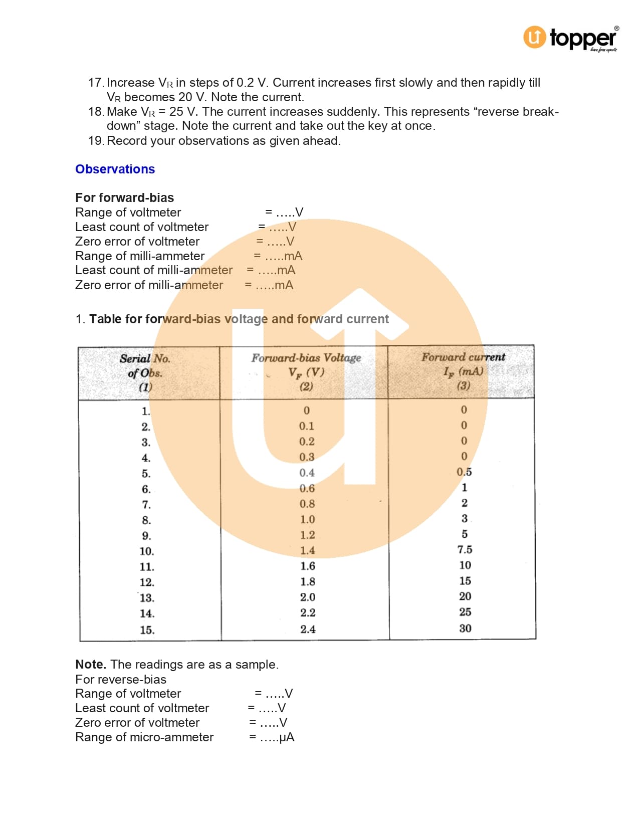 CBSE Class 12 Physics Lab Manual 10.1 – To draw the I-V characteristic curve of a p-n junction in forward bias and reverse bias