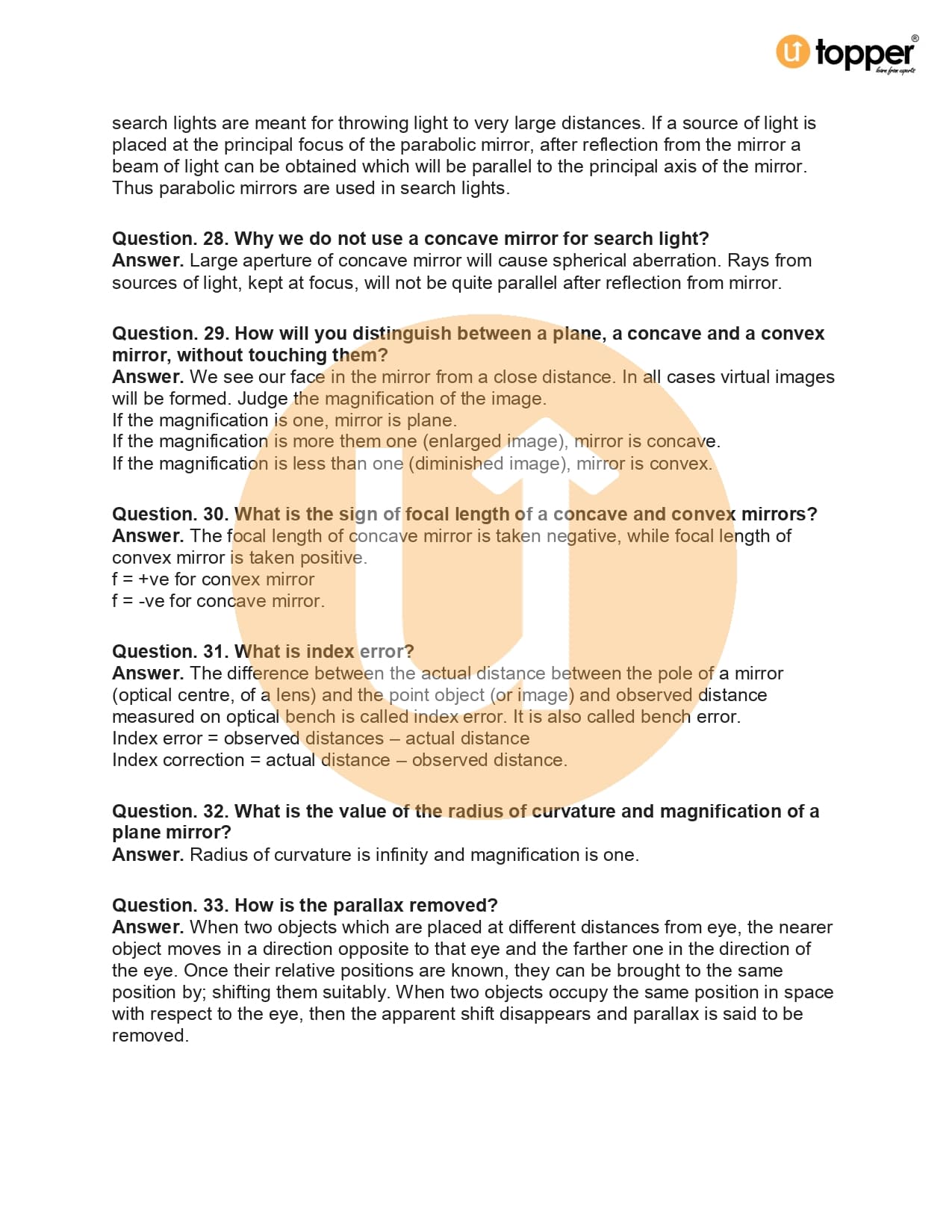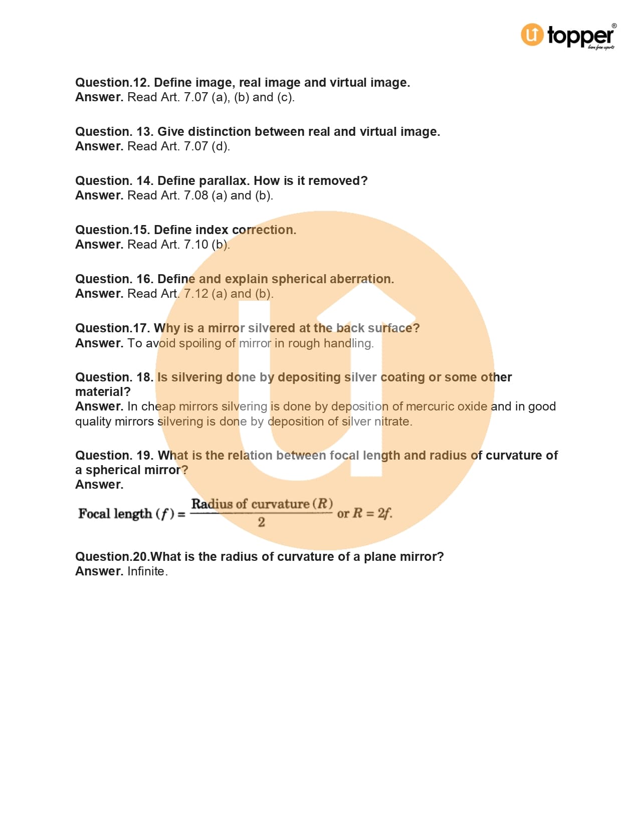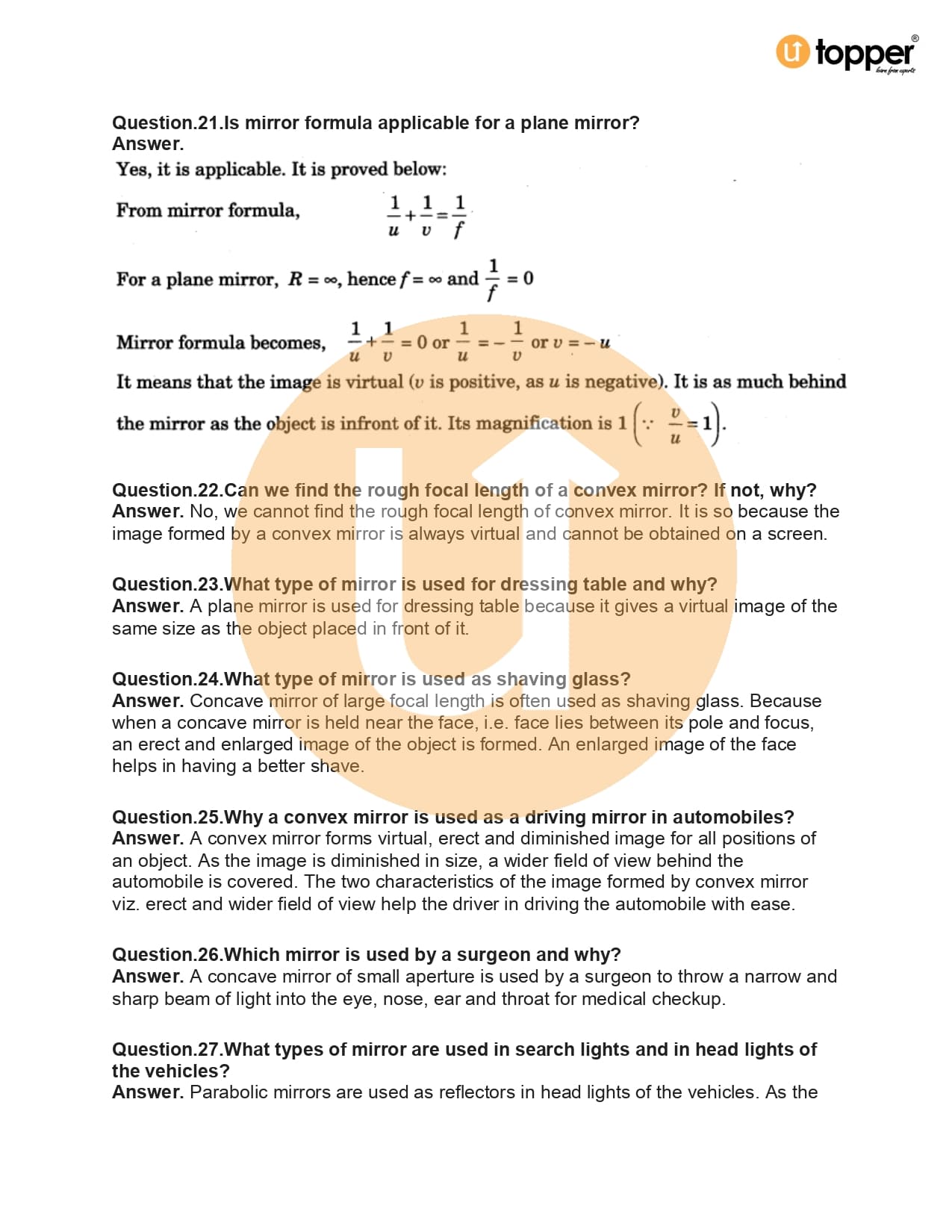 - Focal Length of Spherical Mirrors