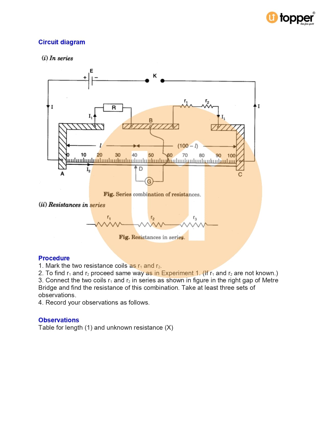 - To verify the laws of combination (series) of resistances using a metre bridge.