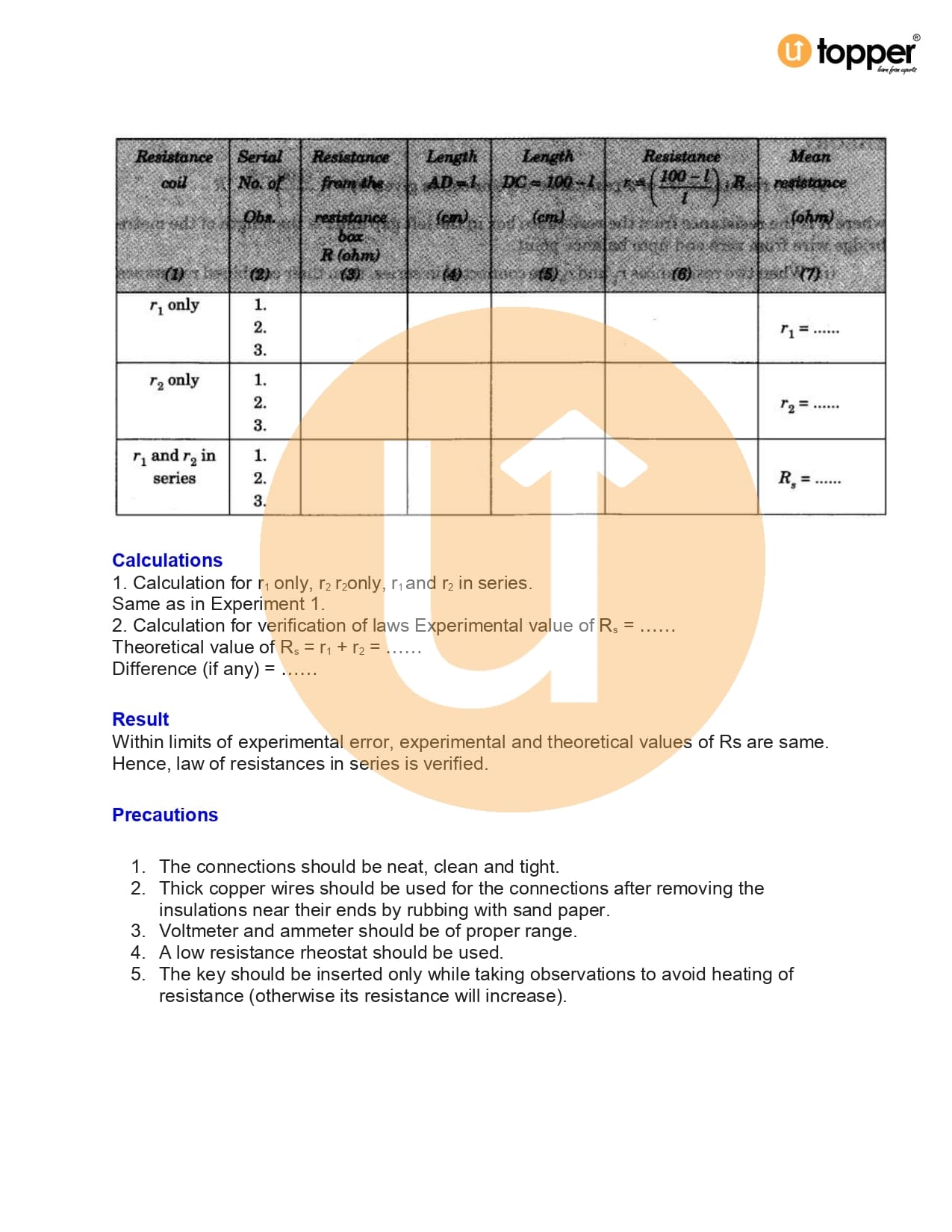 CBSE Class 12 Physics Lab Manual 3.3 – To verify the laws of combination (series) of resistances using a metre bridge