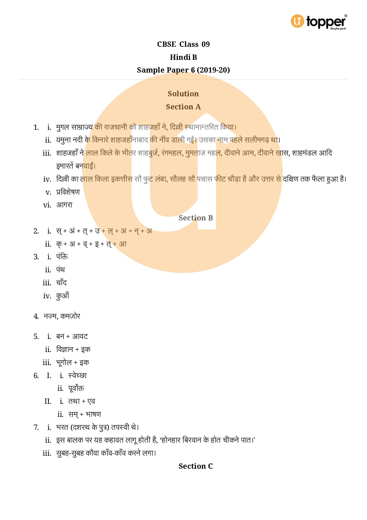 CBSE Class 9 Hindi Exam Sample Paper 6 with Solutions Pdf