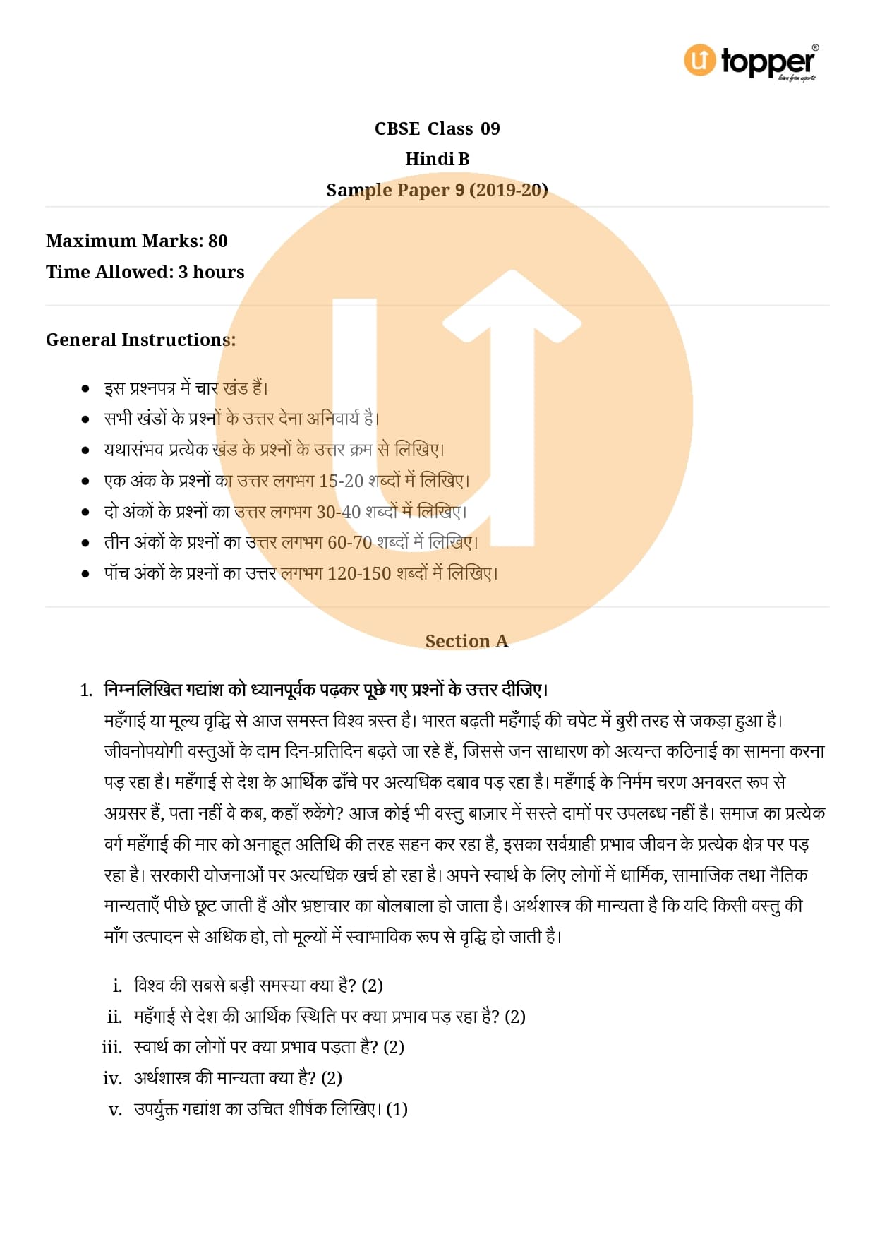CBSE Class 9 Hindi Sample Paper 9