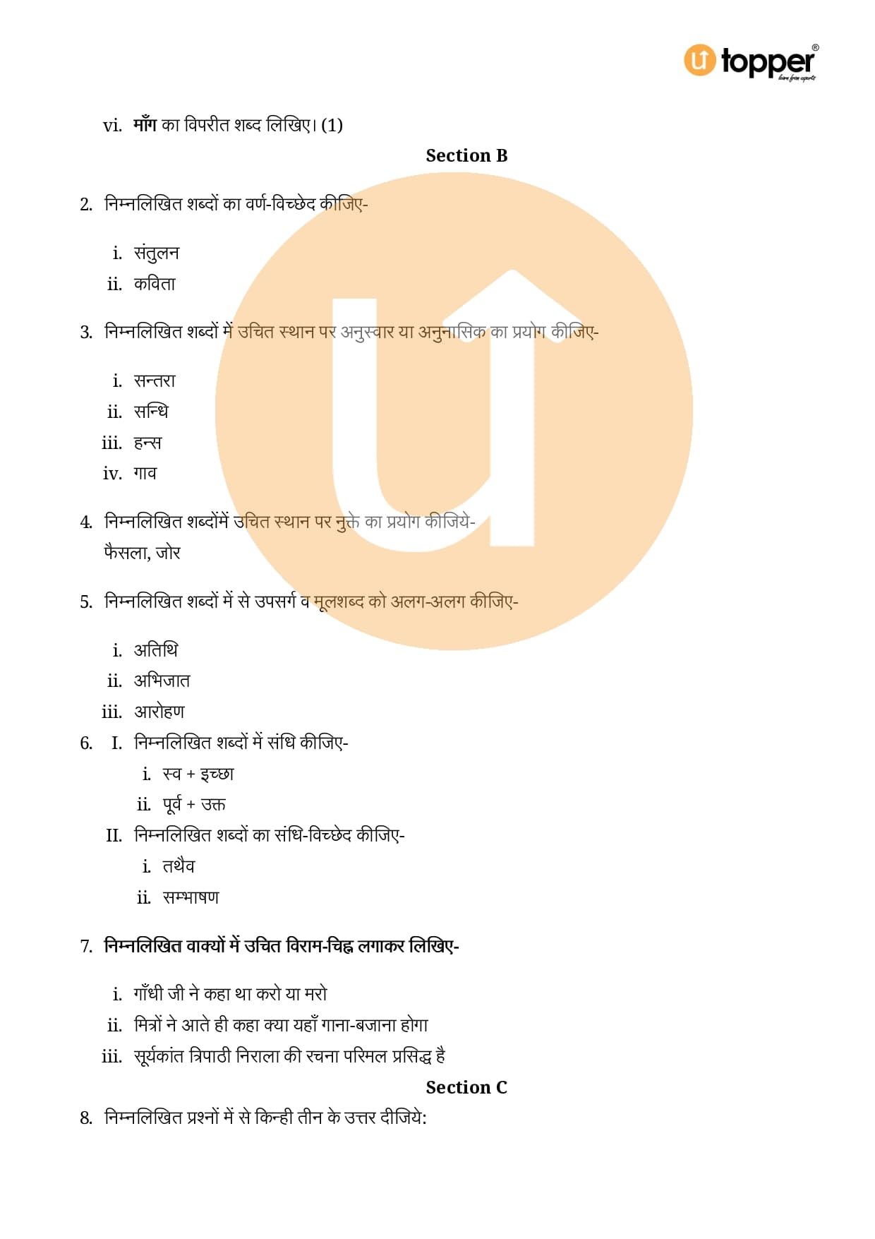 Class 8 Important Question