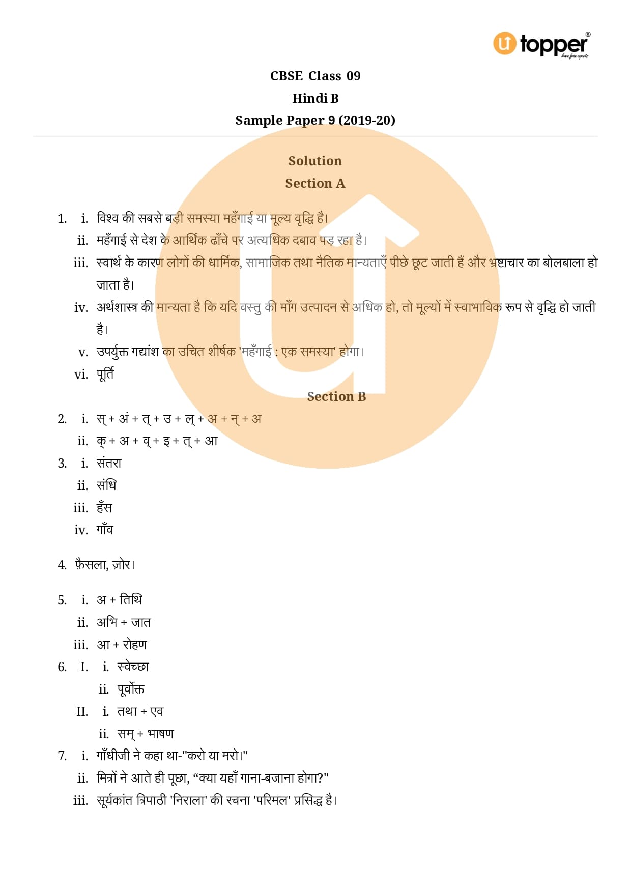 CBSE Class 9 Hindi Sample Paper Set 7 With Solution