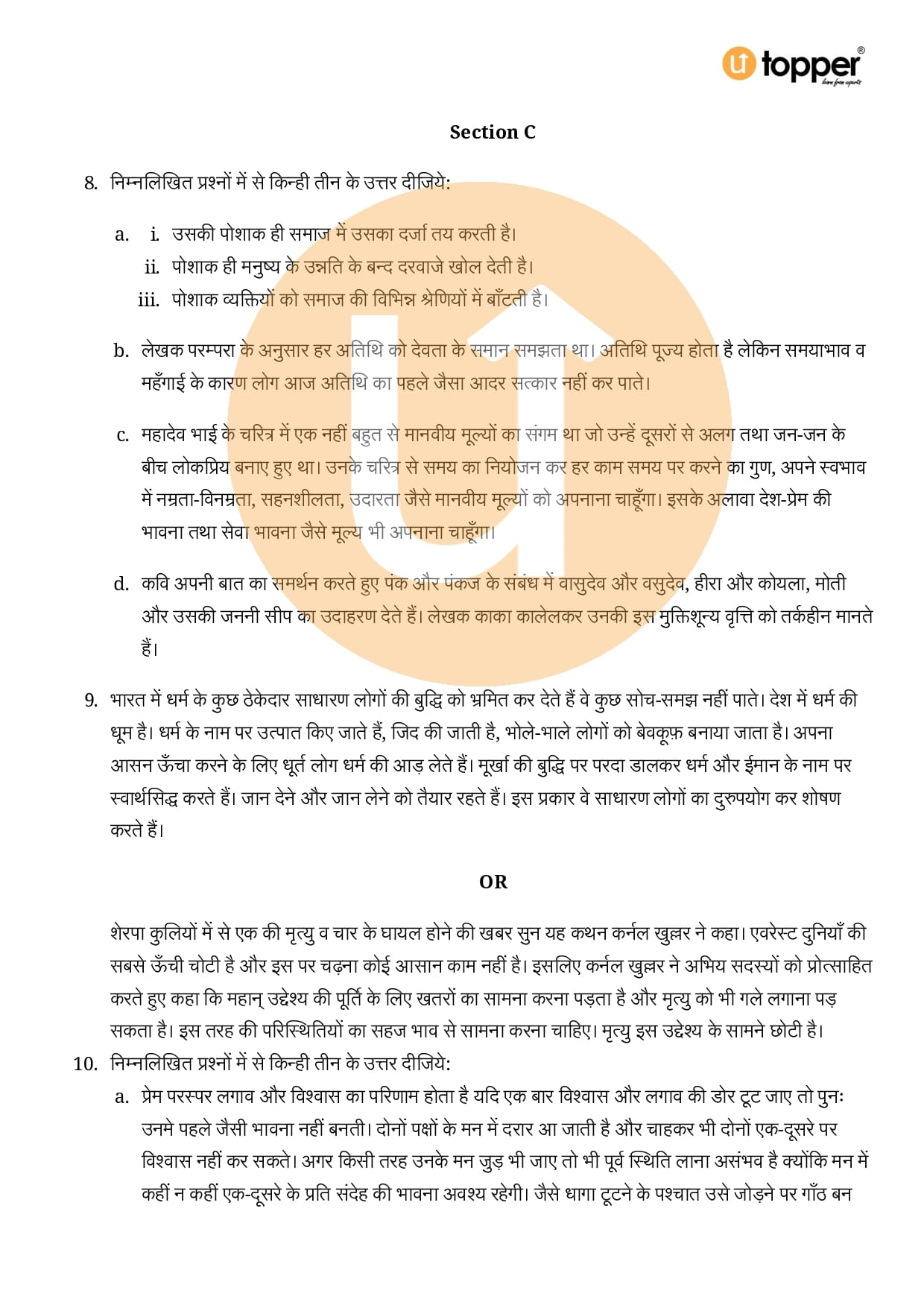 • Class 10 Questions