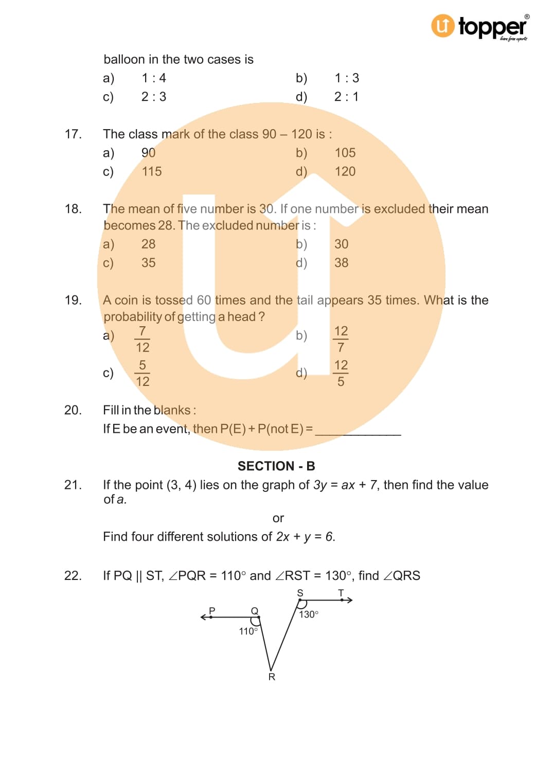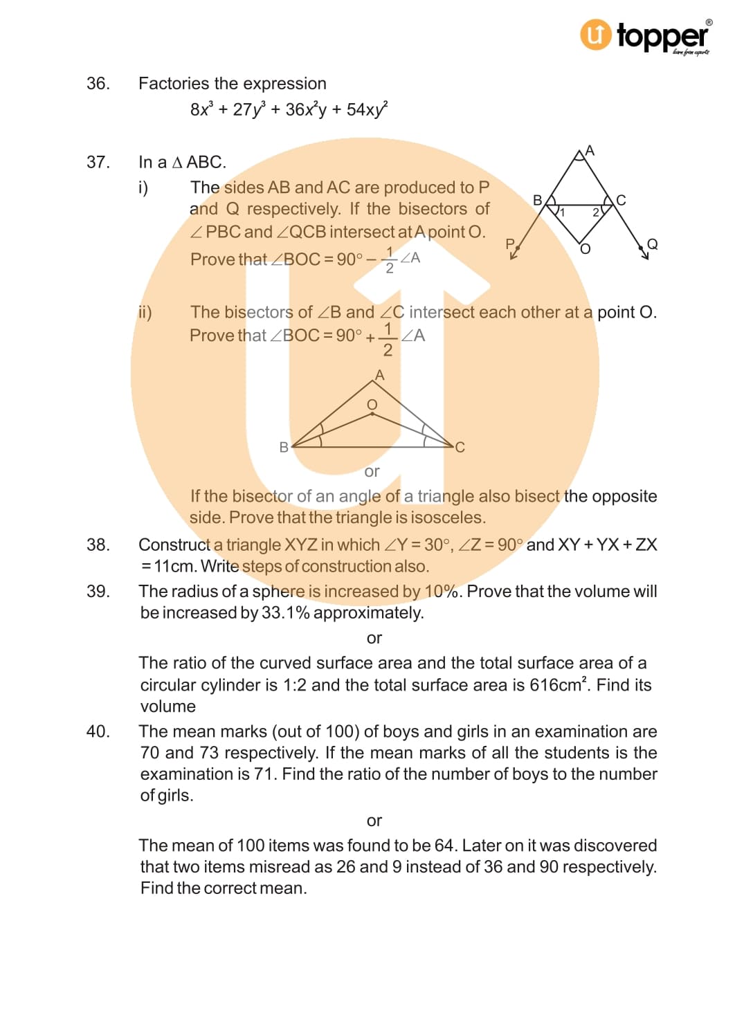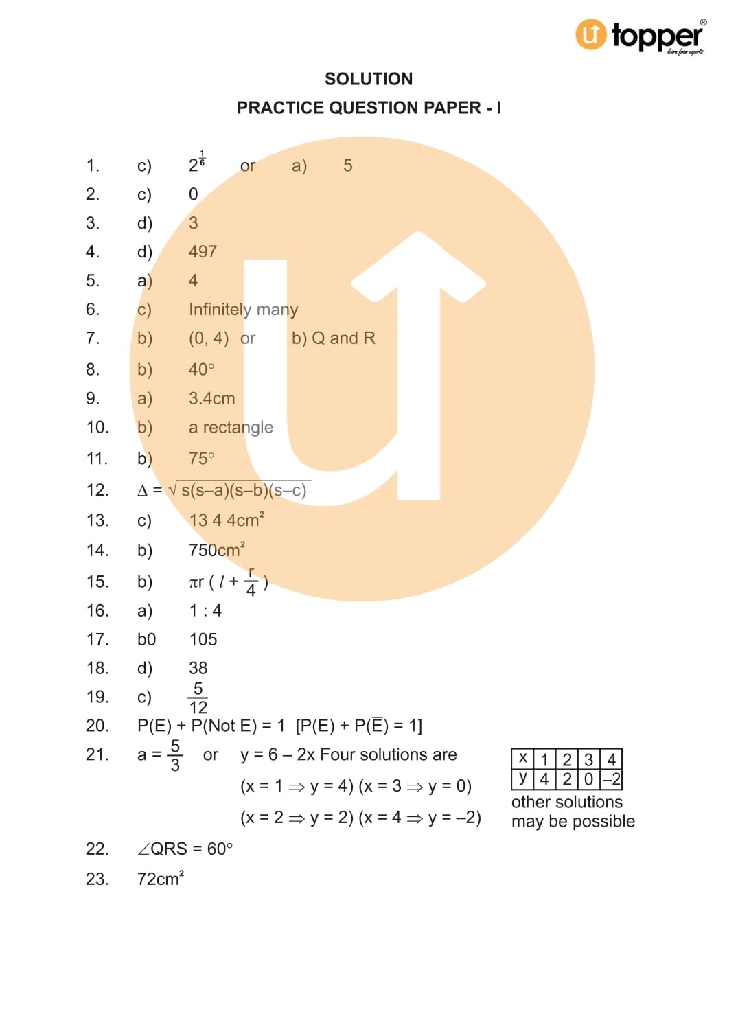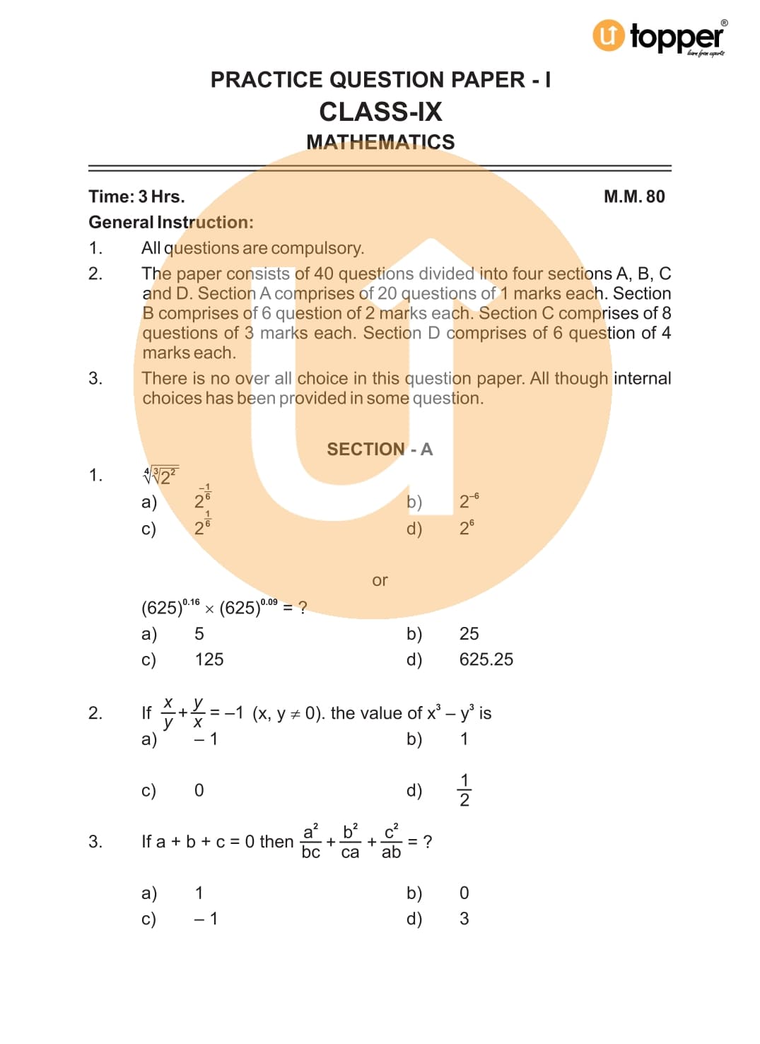 CBSE Class 9 Maths Exam Sample Paper 1 with Solutions Pdf