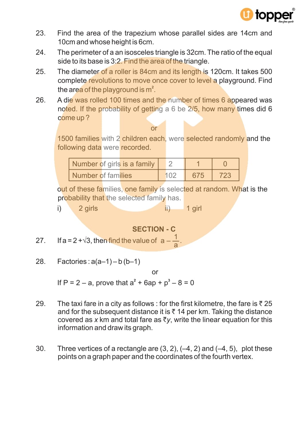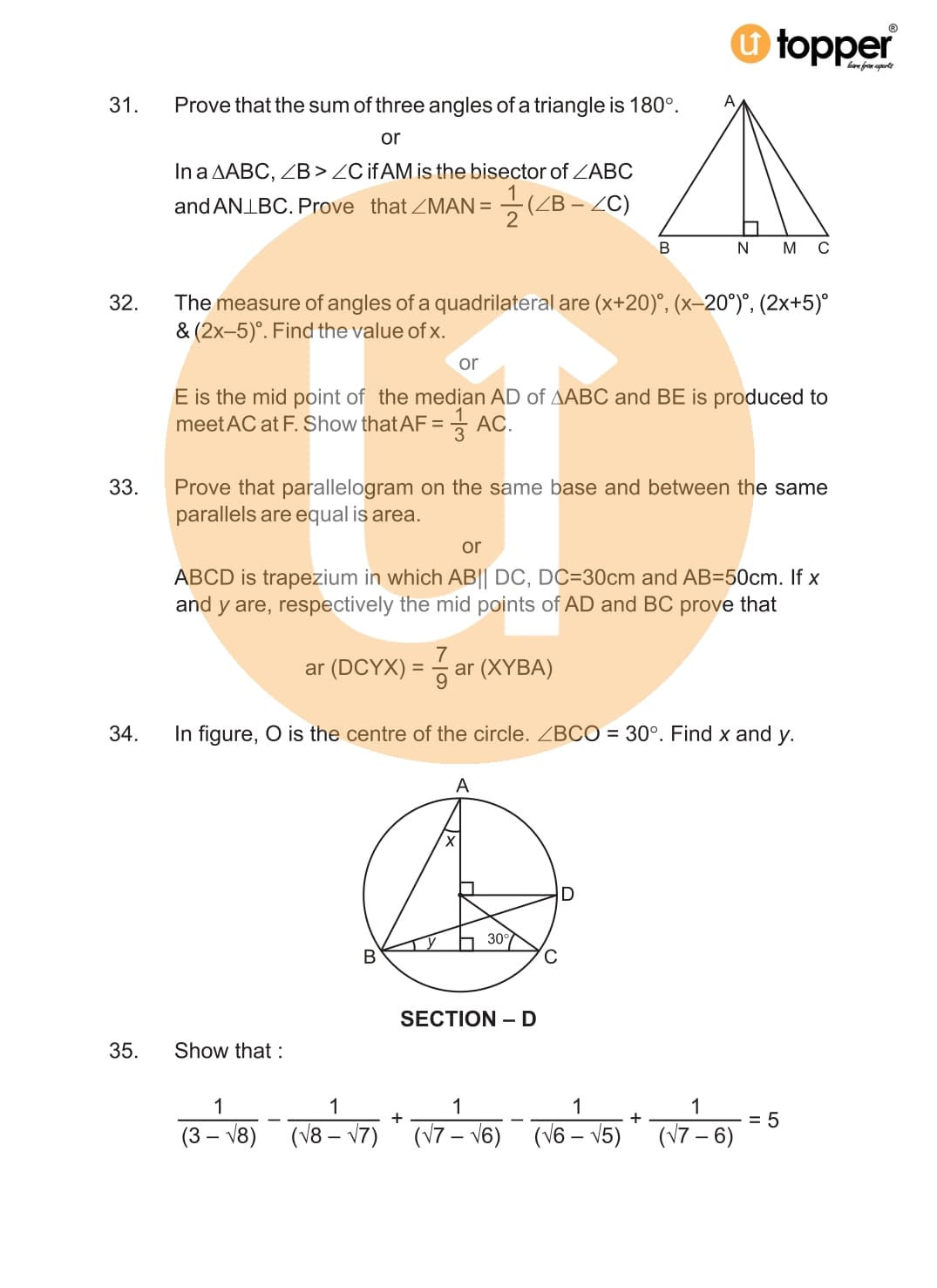 CBSE Class 9 Maths Sample Question Papers All Set Download PDf