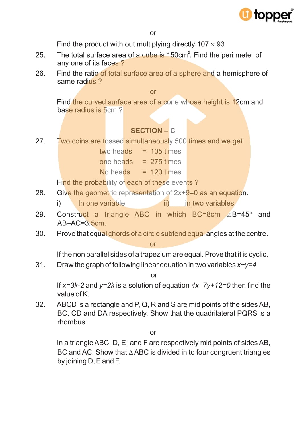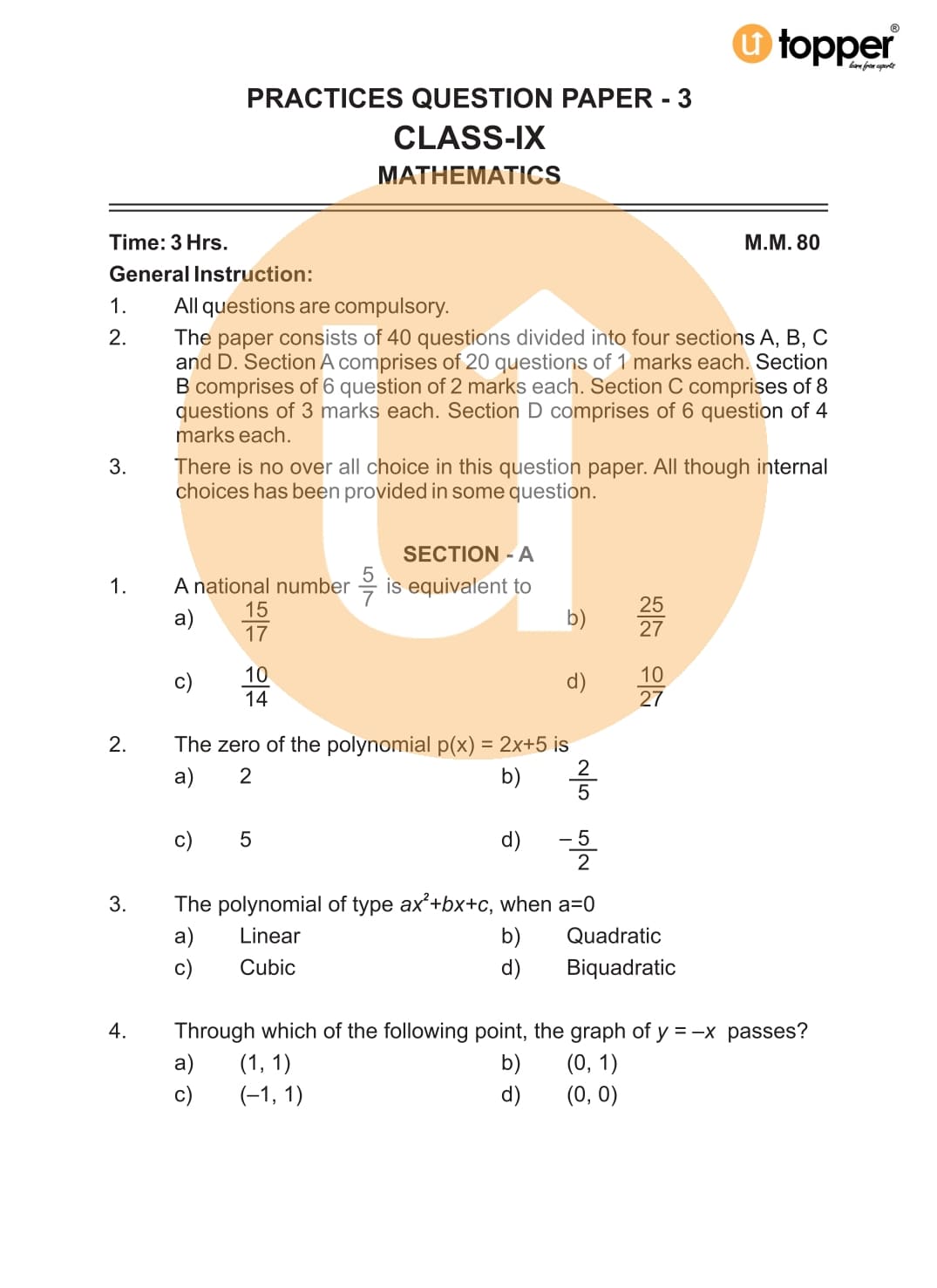 CBSE Sample Paper for Class 9 Maths Exam Set 3 with Solutions Pdf