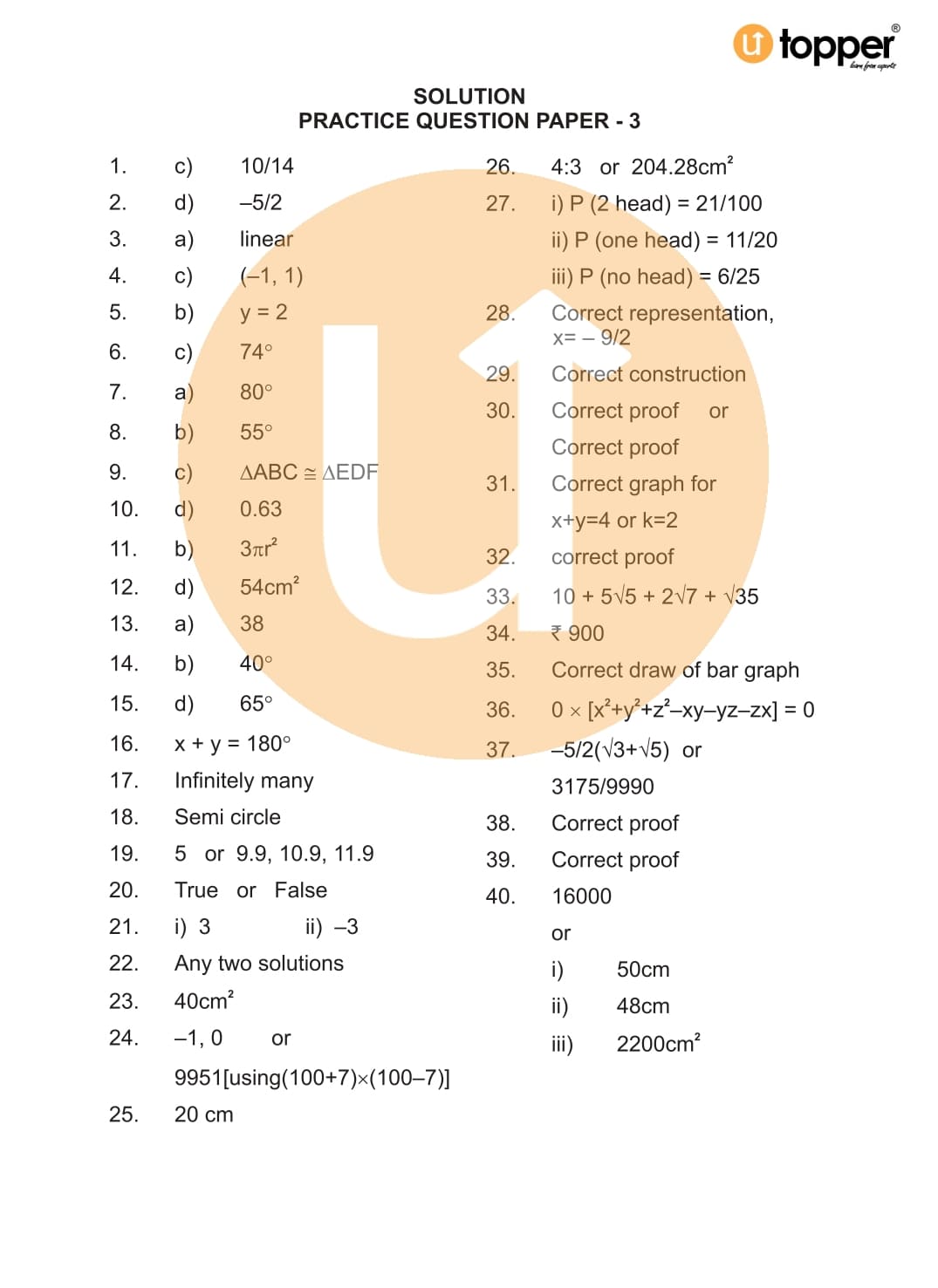 CBSE Class 9 Maths Exam Sample Paper 3 with Solutions Pdf