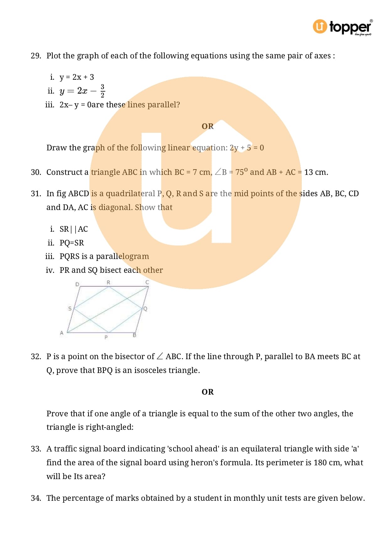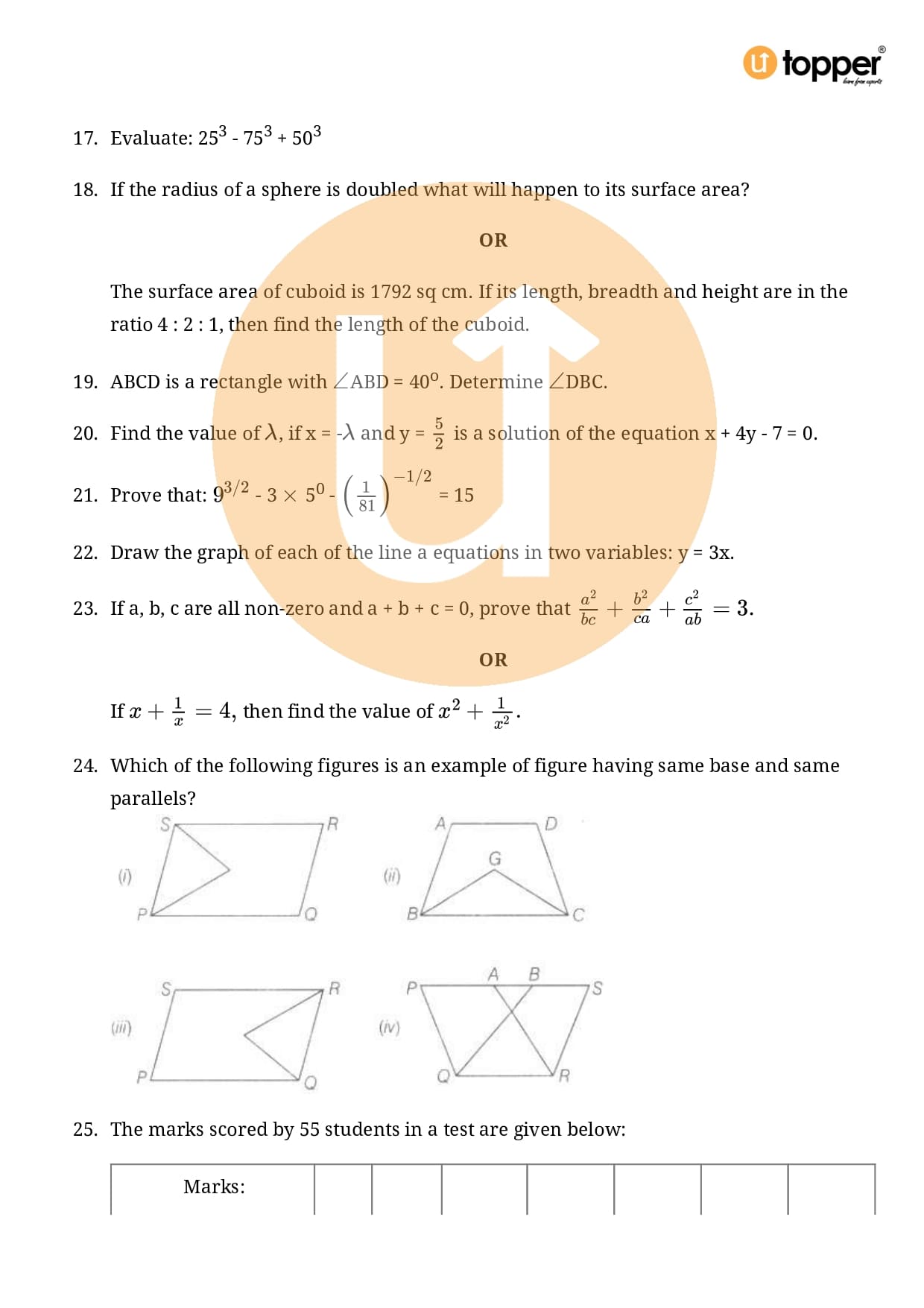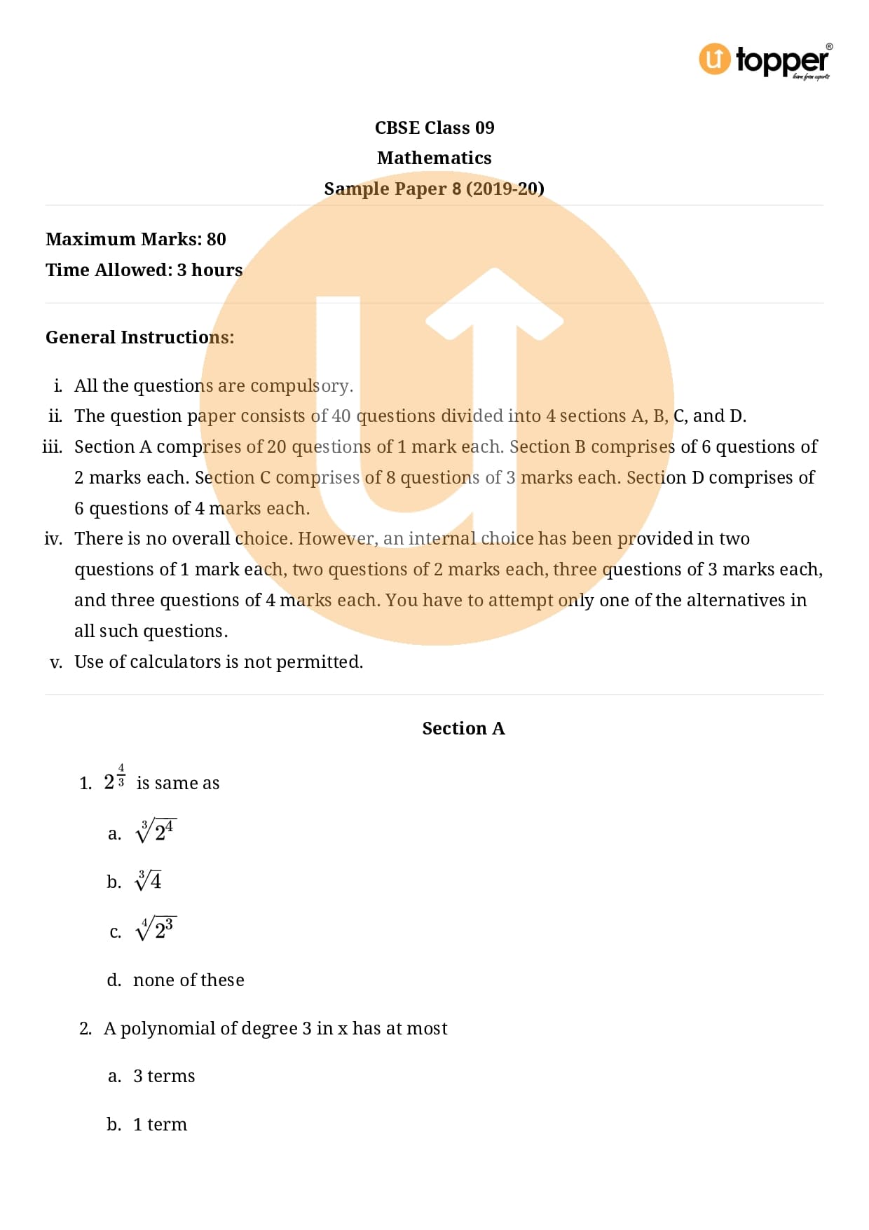 CBSE Sample Paper for Class 9 Maths Exam Set 8 with Solutions Pdf