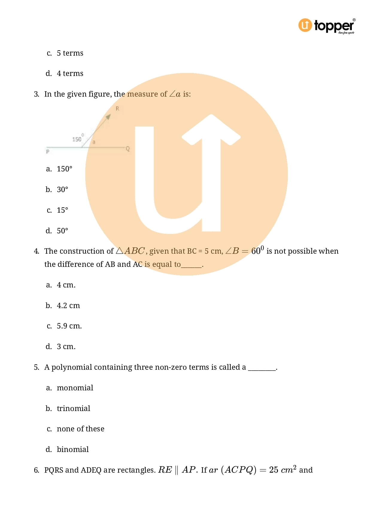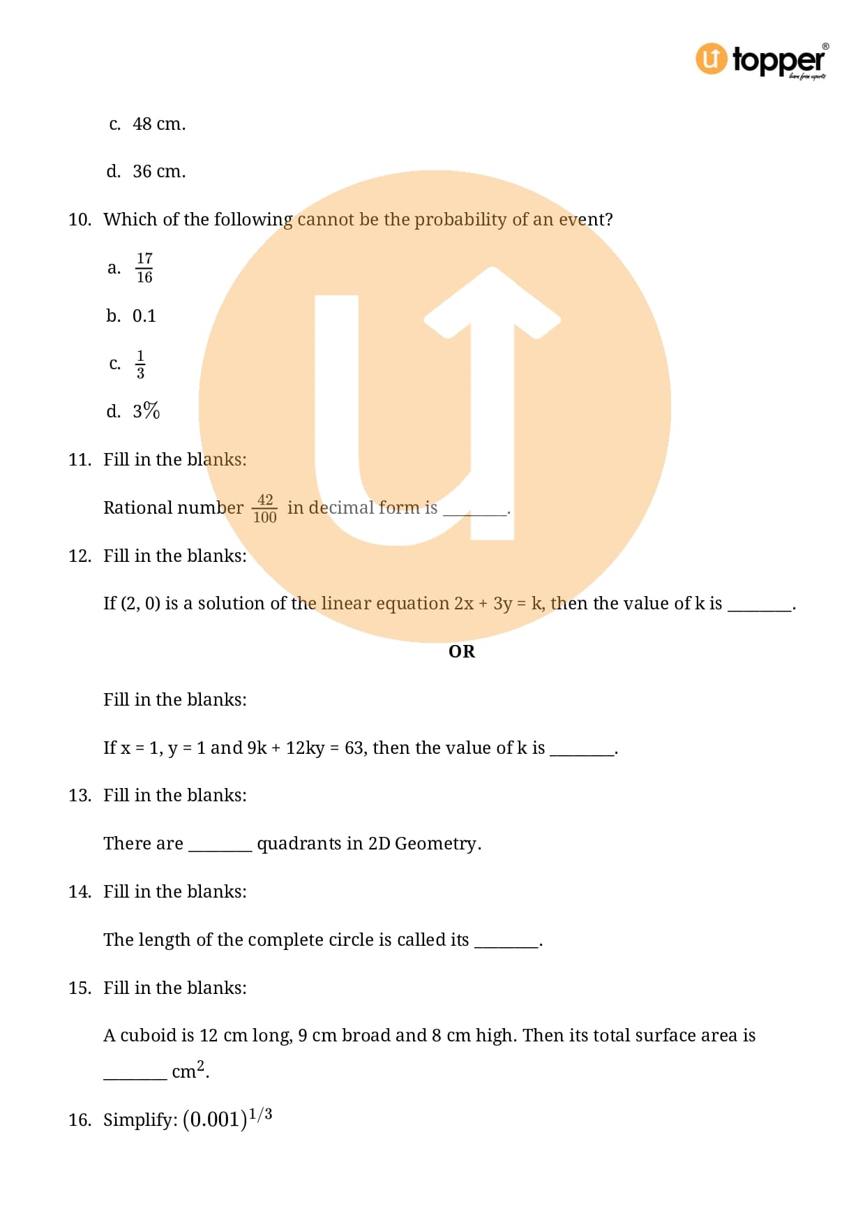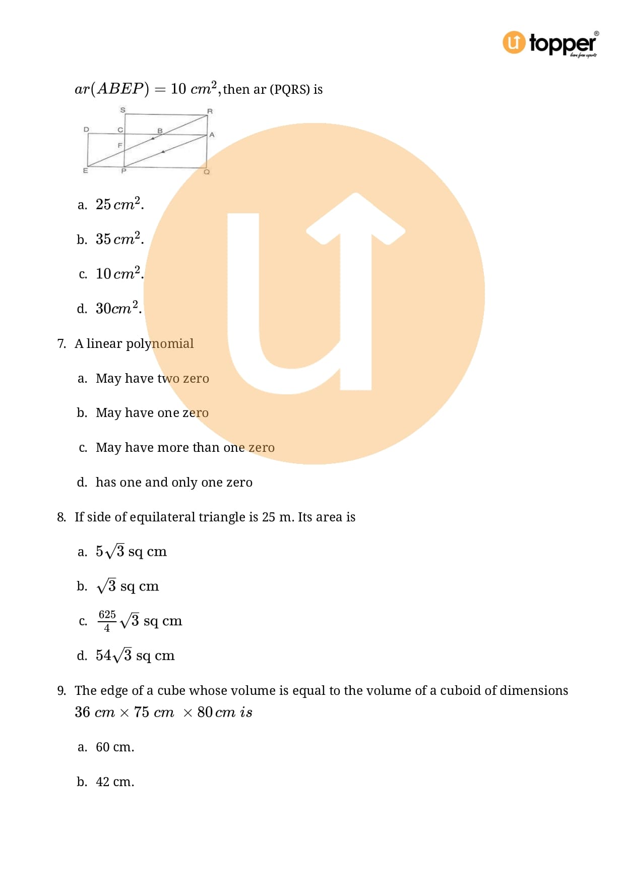 CBSE Sample Paper for Class 9 Maths Exam Set 8 with Solutions Pdf