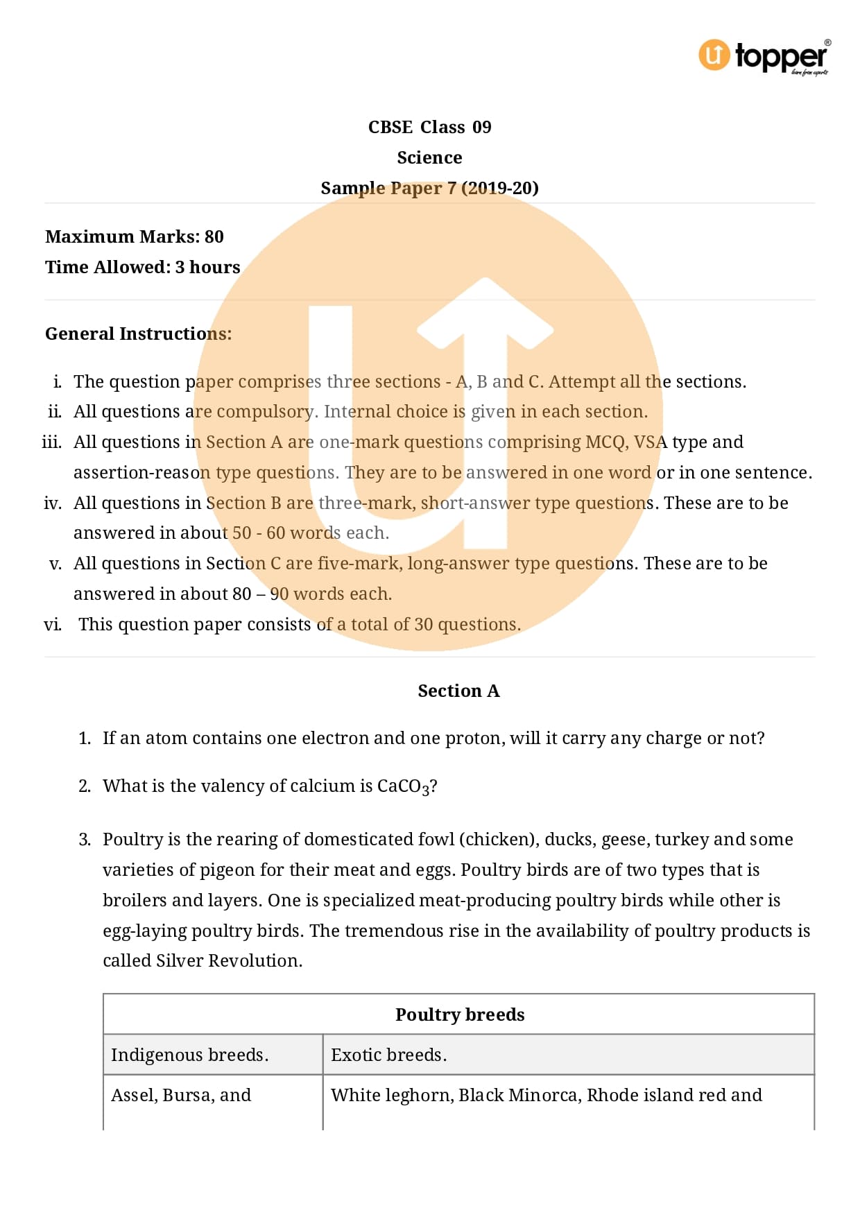 CBSE Sample Paper for Class 9 Science Exam Set 7 with Solutions Pdf