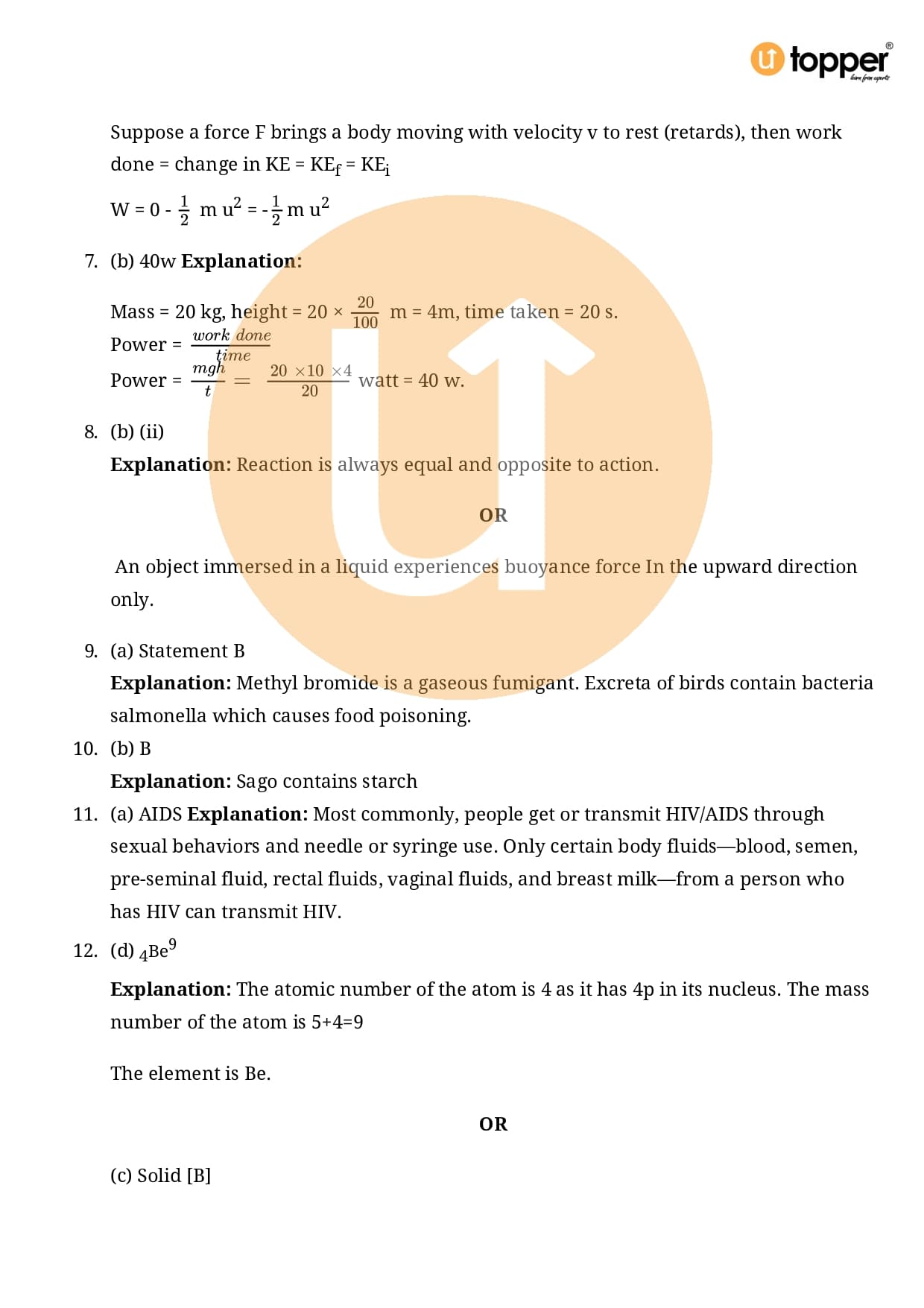 CBSE Class 9 Science Exam Sample Paper 7 with Solutions Pdf