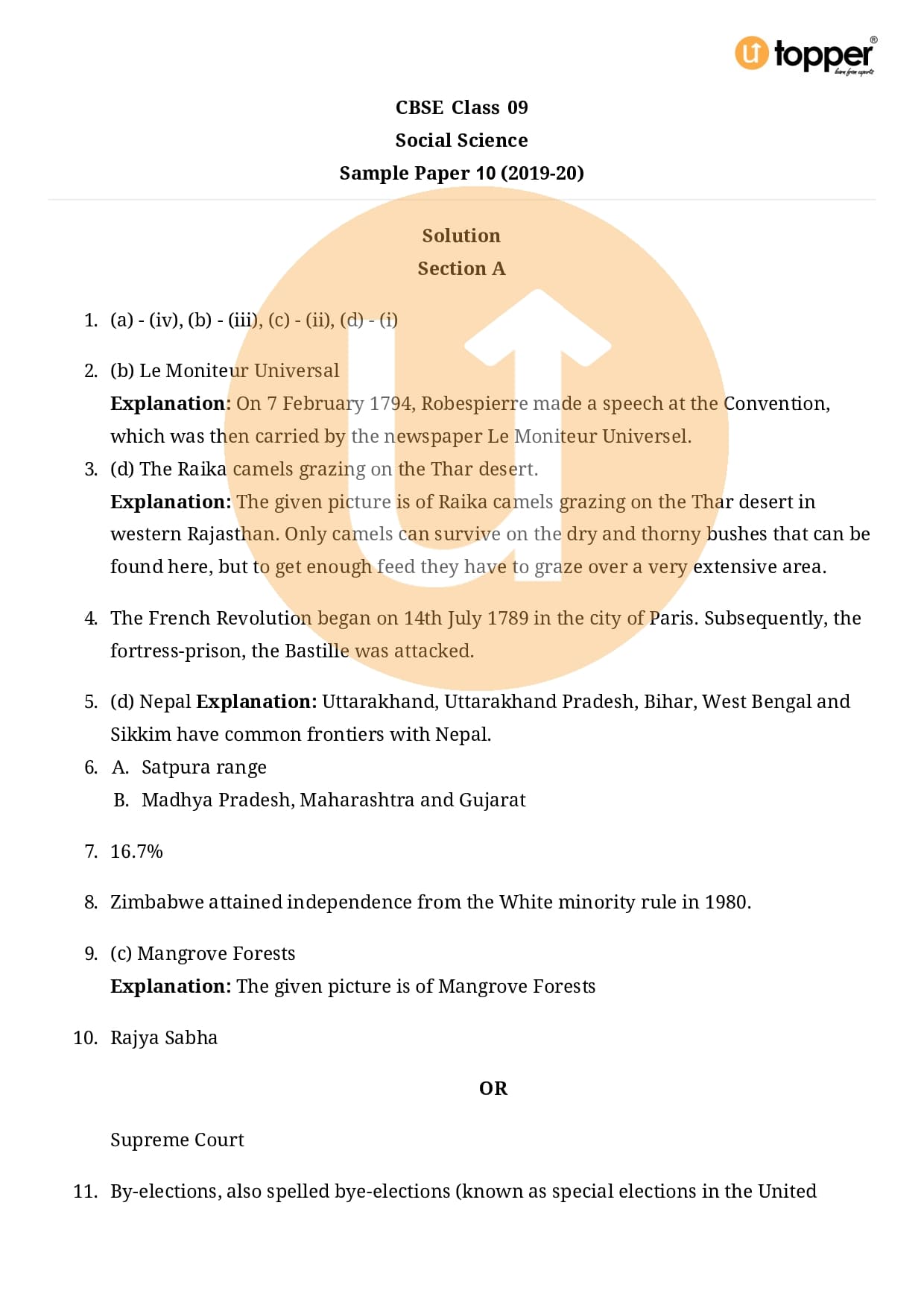 CBSE Class 9 Social Science Exam Sample Paper 10 with Solutions Pdf