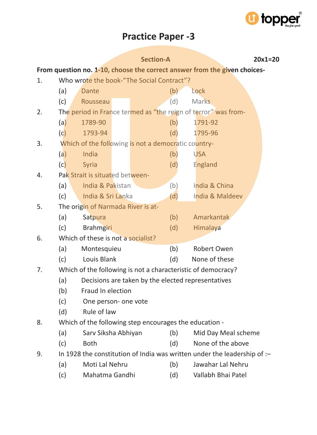 CBSE Class 9 Social Science Sample Paper 3