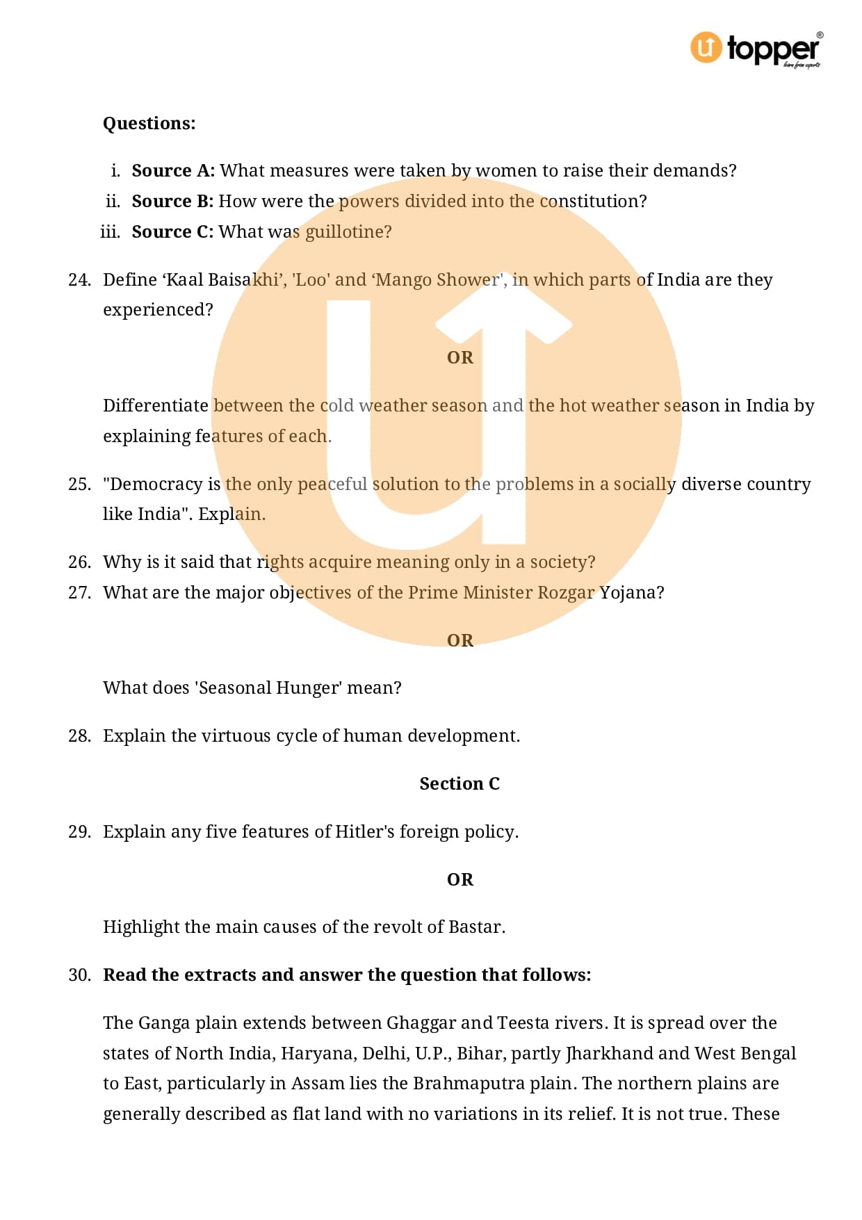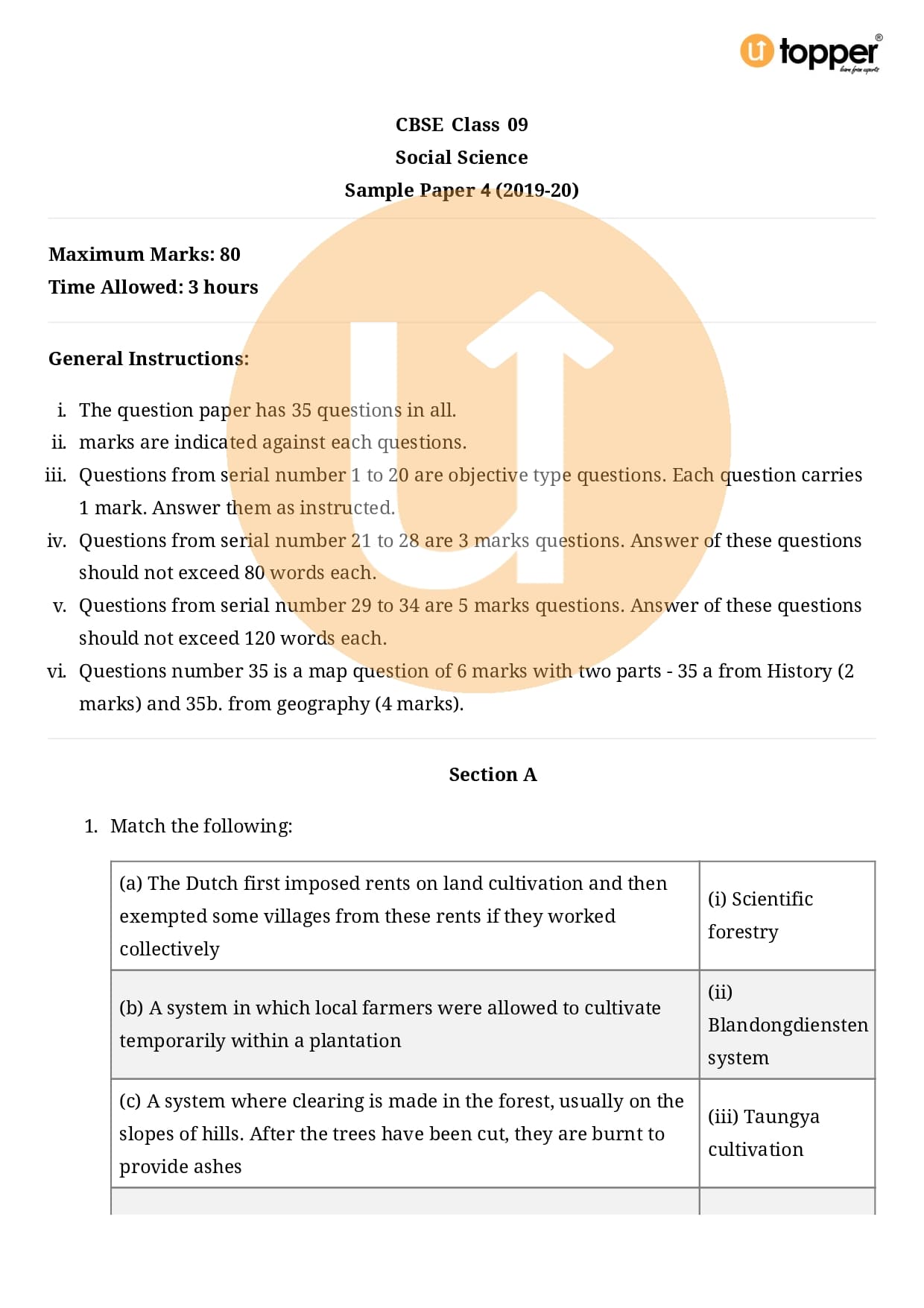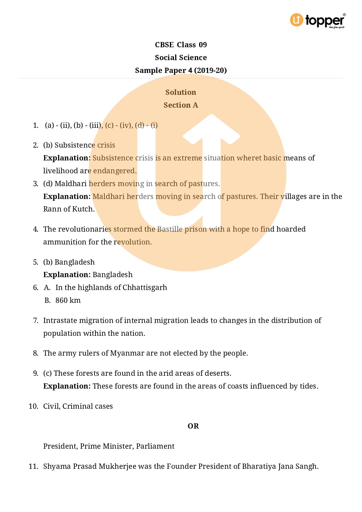 CBSE Class 9 Social Science Exam Sample Paper 4 with Solutions Pdf