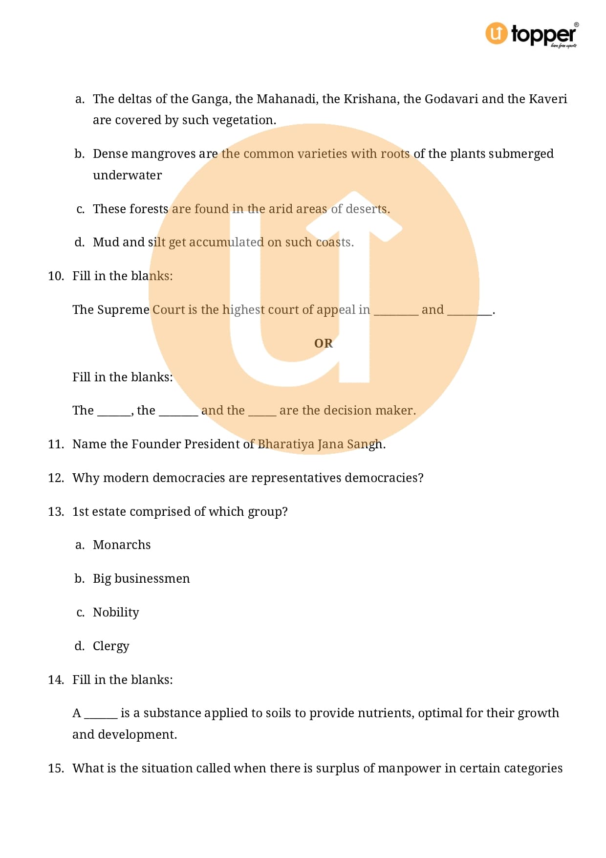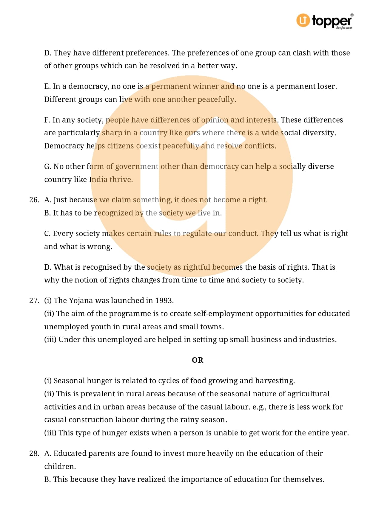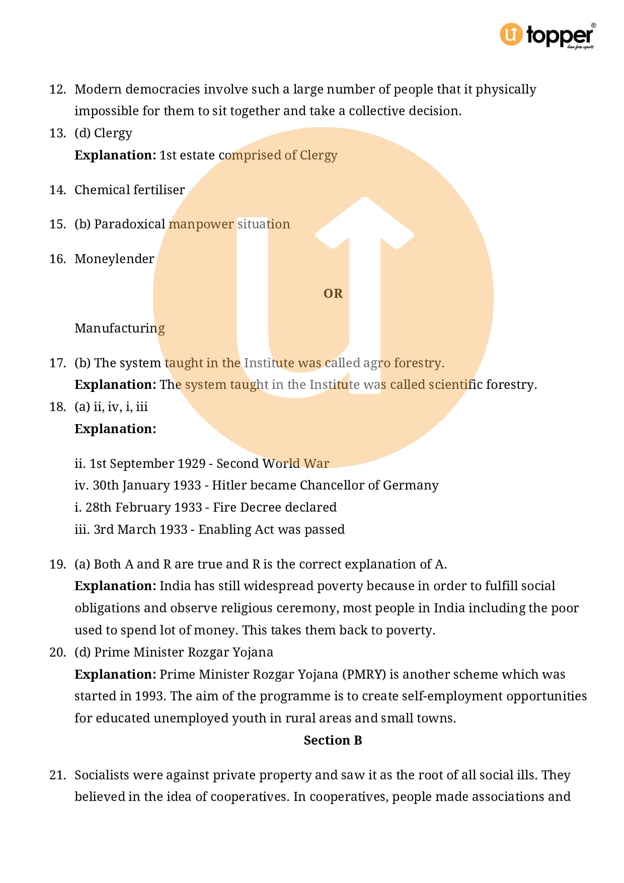 CBSE Class 9 Social Science Exam Sample Paper 4 with Solutions Pdf