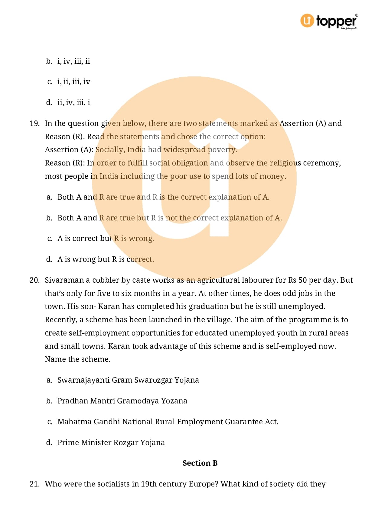 CBSE Sample Paper for Class 9 Social Science Exam Set 4 with Solutions Pdf