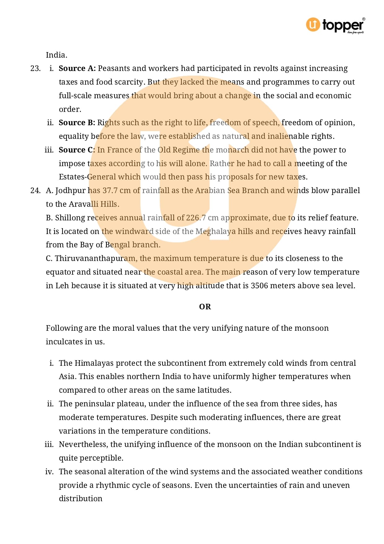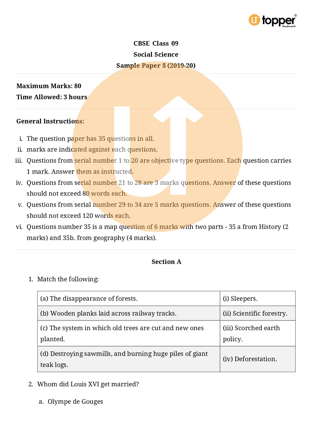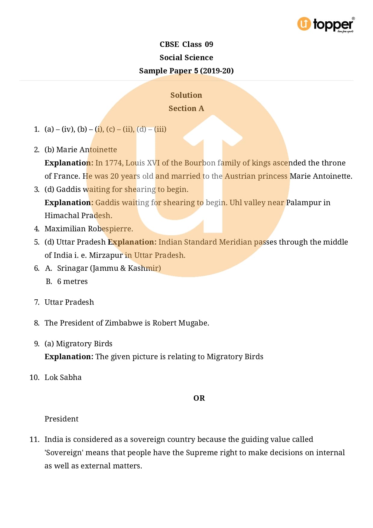 CBSE Class 9 Social Science Exam Sample Paper 5 with Solutions Pdf