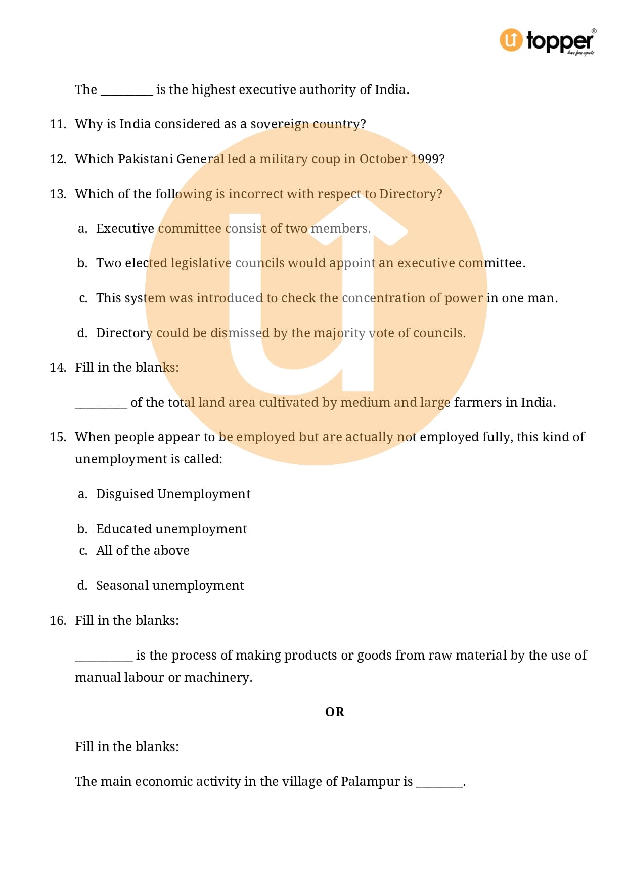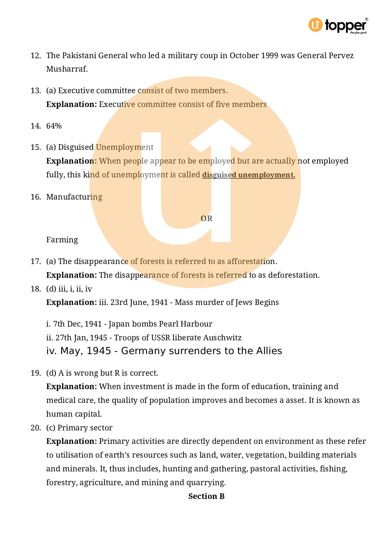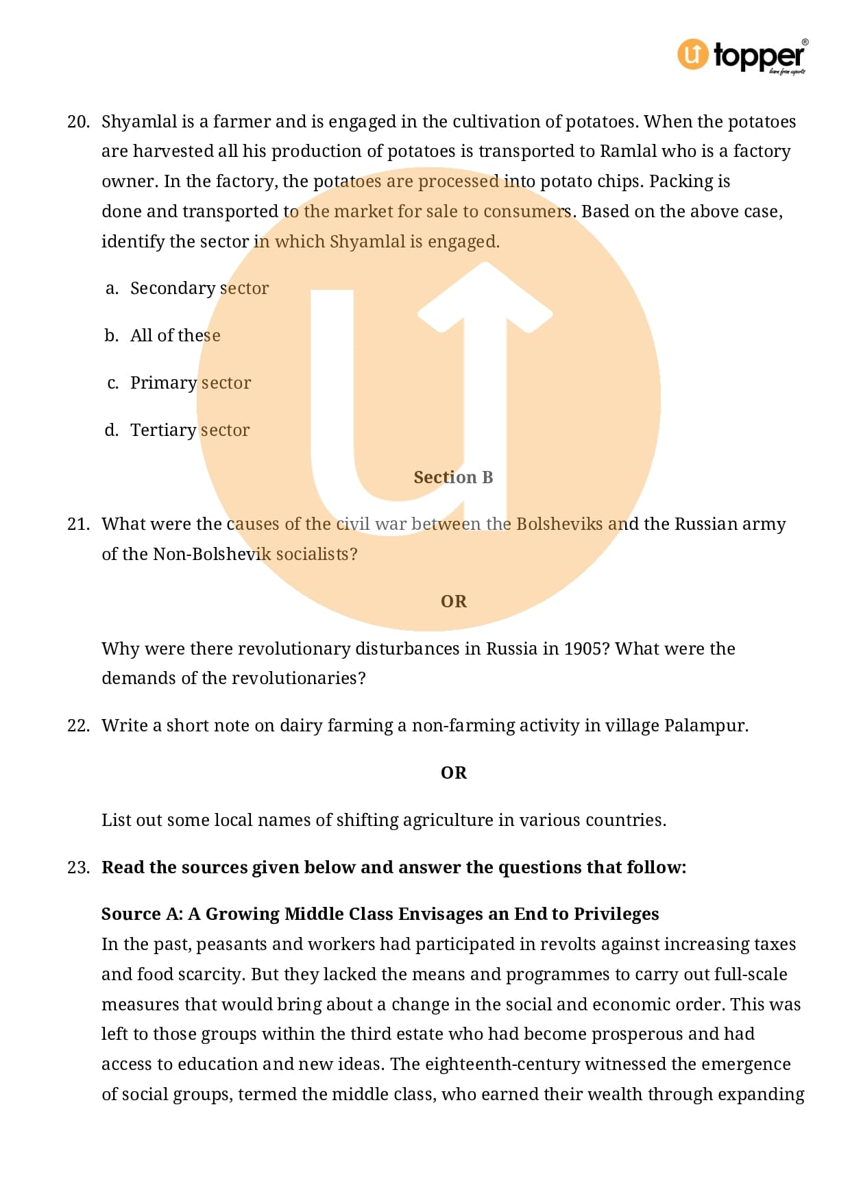 CBSE Class 9 Social Science Exam Sample Paper 5 with Solutions Pdf
