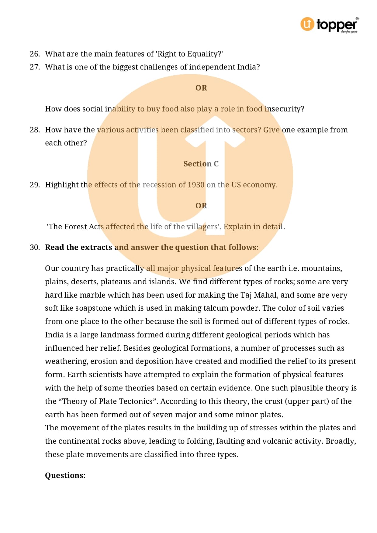 CBSE Class 9 Social Science Sample Question Papers All Set Download PDf
