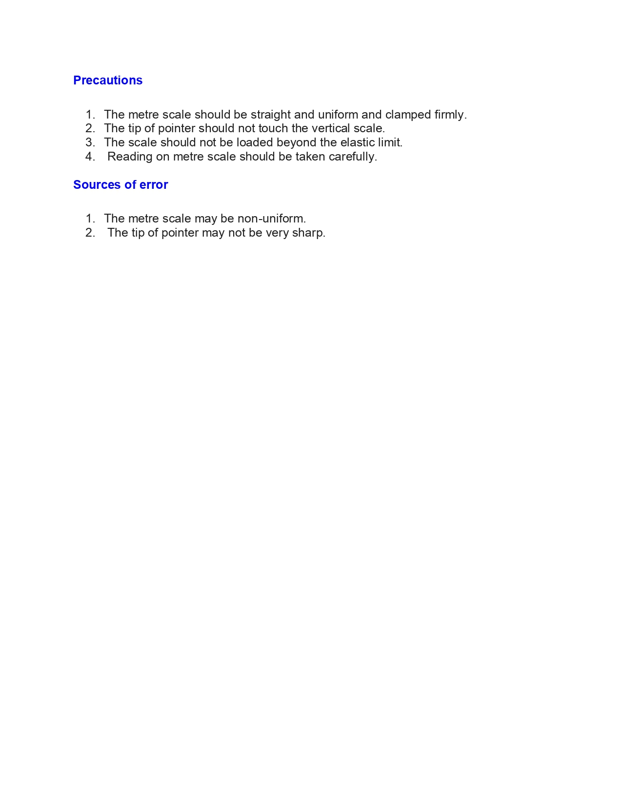 - To study the effect of load on depression of a suitably clamped metre scale loaded at (i) its end (ii) in the middle.