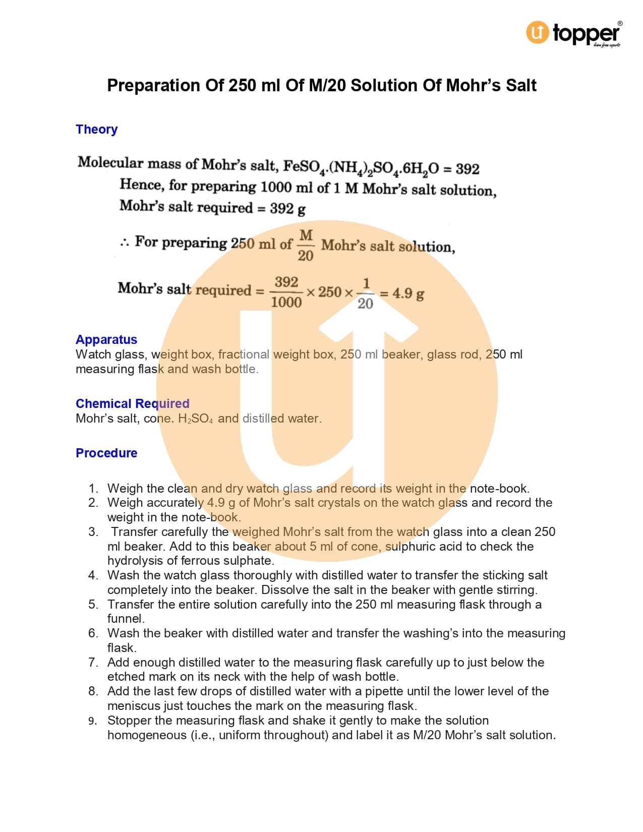 Class 12 Lab Manual Chemistry Practical 11.3 – Preparation of 250 ml of M/20 solution Mohr’s Salt
