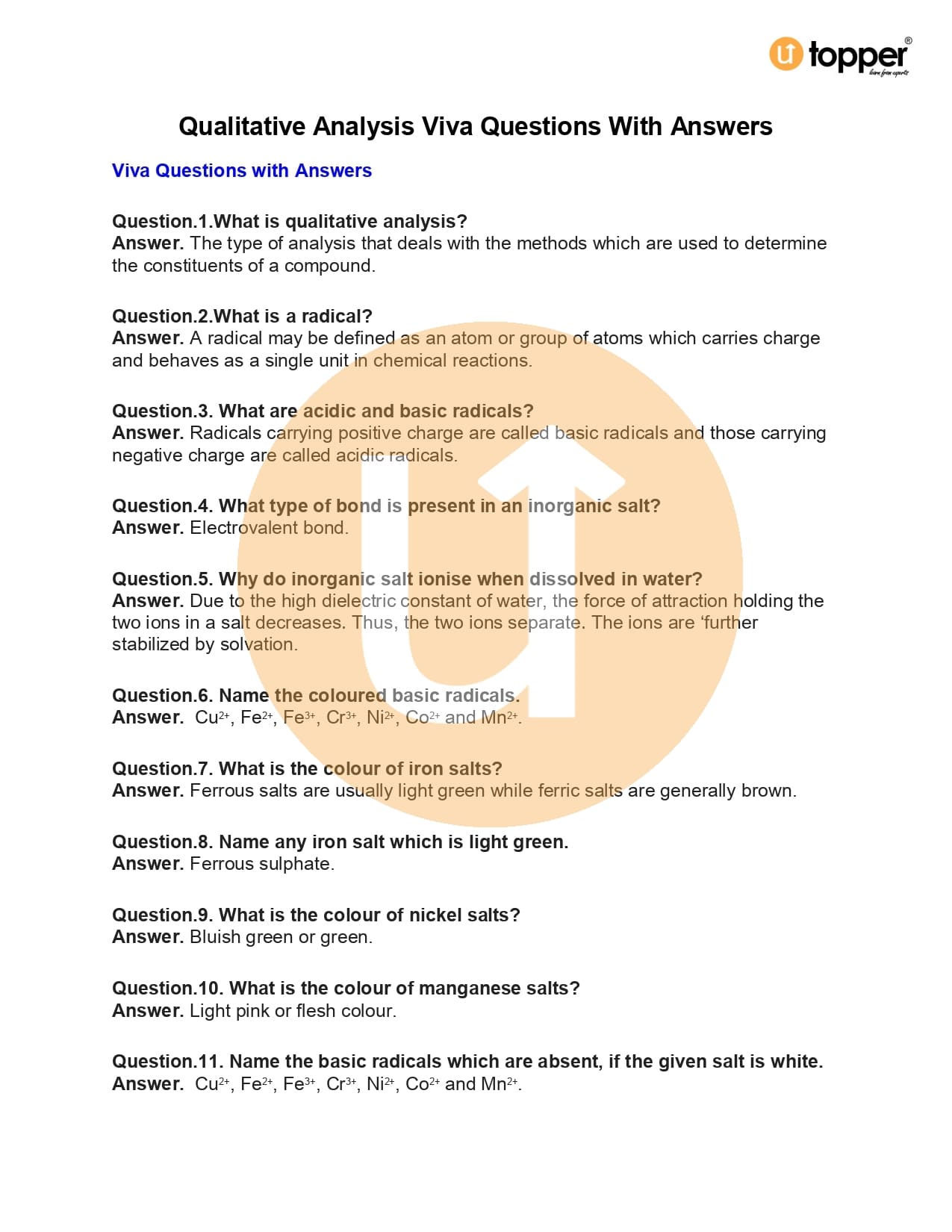 - Preparation of Inorganic Compounds Viva Questions with Answers.