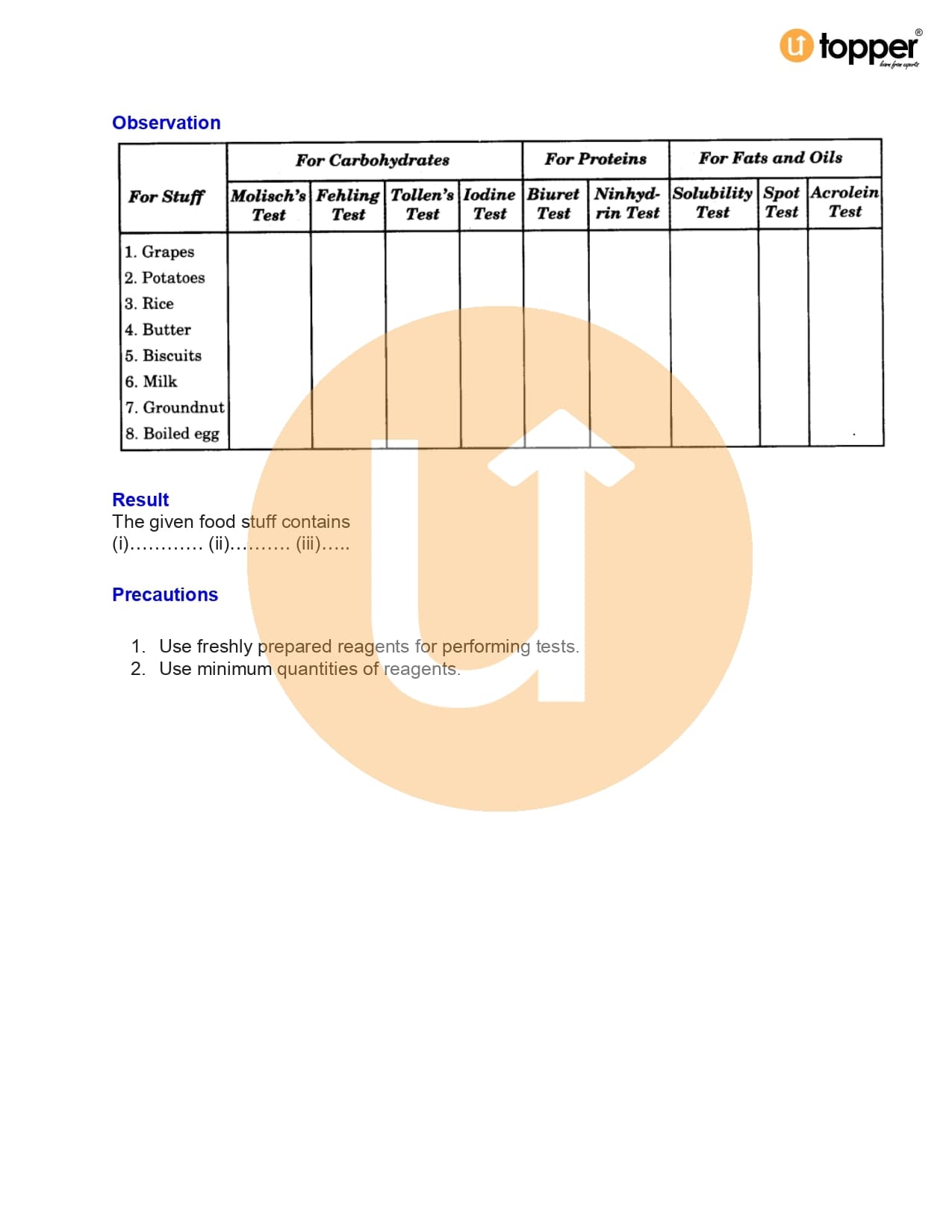 - Tests of Carbohydrates, Fats and Proteins in Pure Samples and Detection of Their Presence in Given Food Stuffs