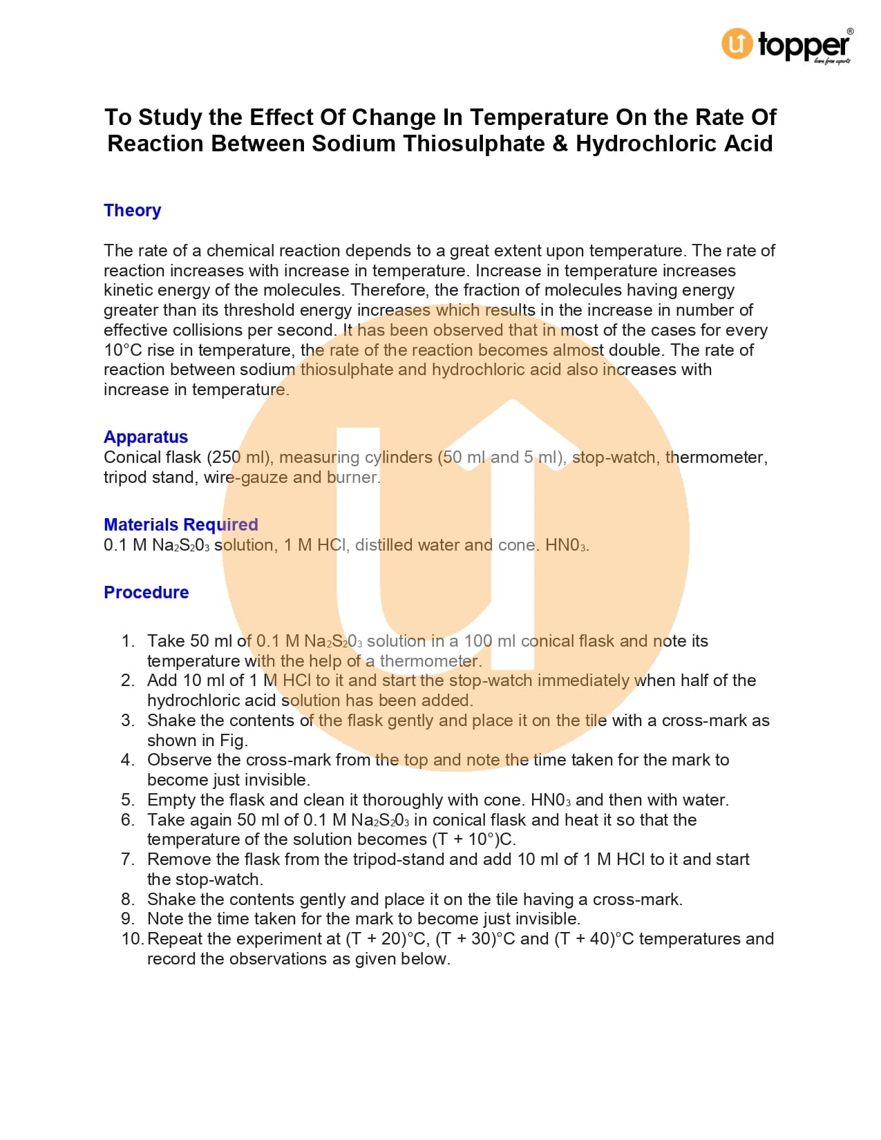 Class 12 Lab Manual Chemistry Practical 3.2 – To Study the effect of Change in Temperature