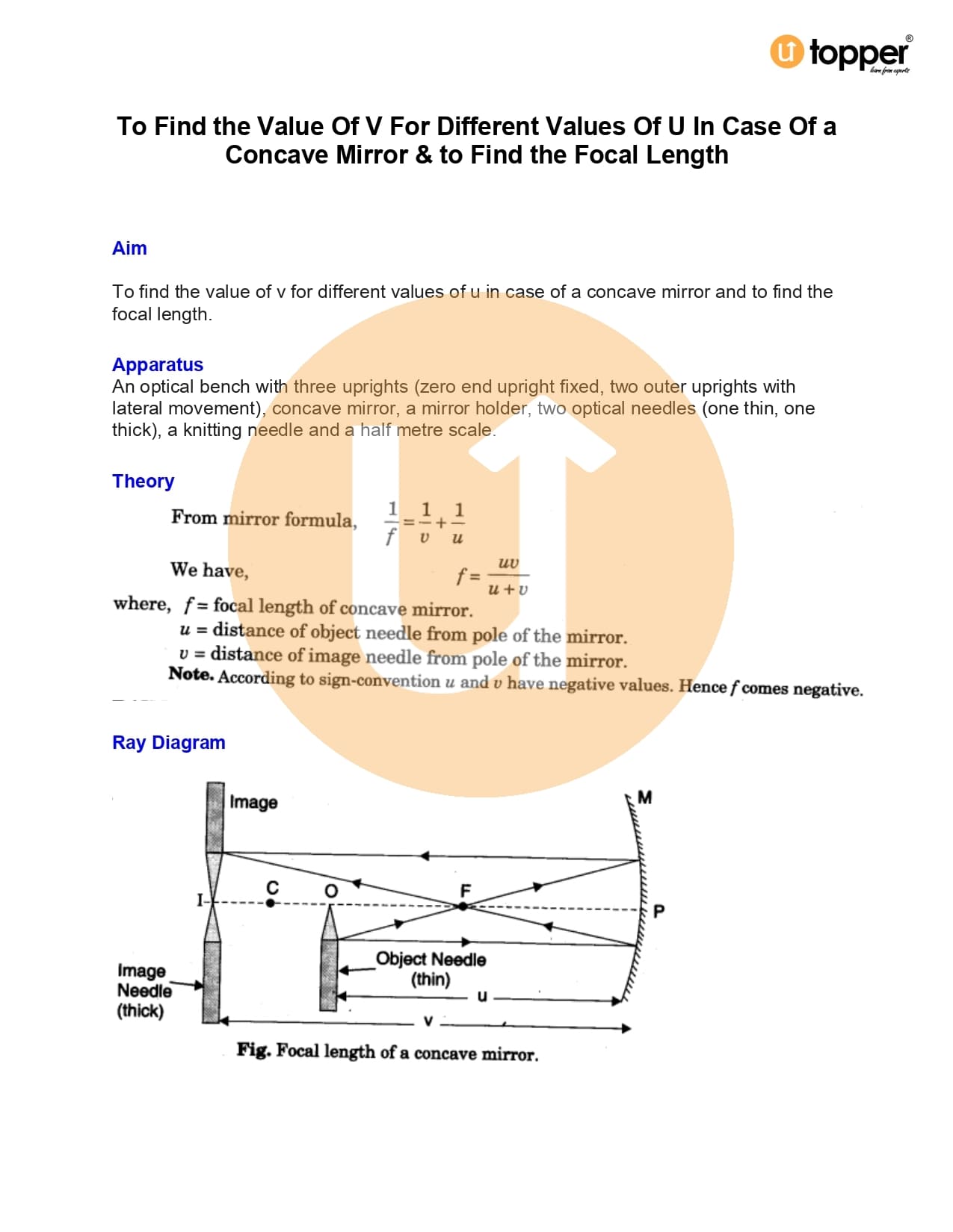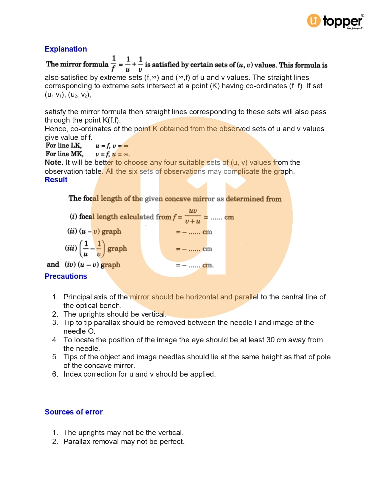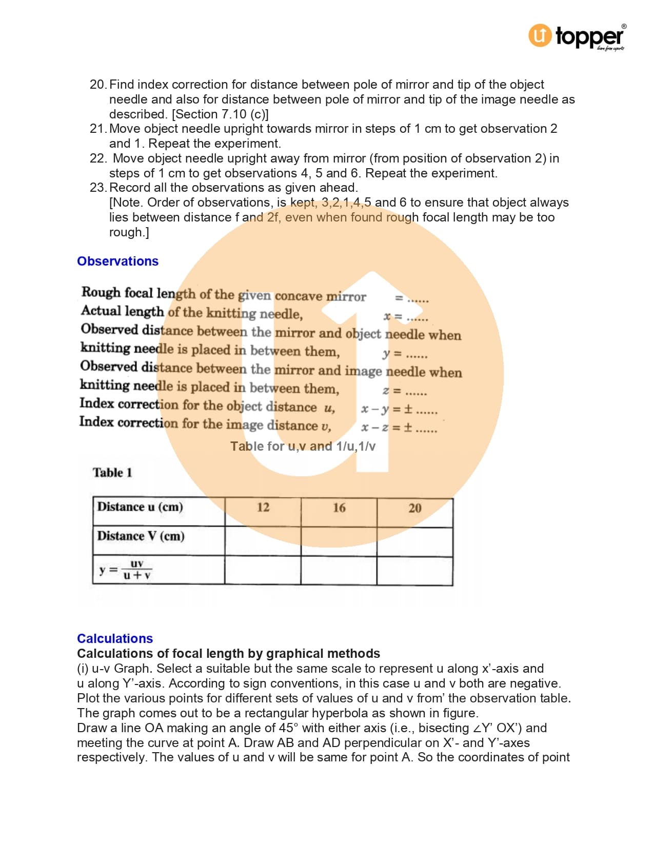 Class 12 Physics Lab Manual 7.1 – Find the value of v for different values of u