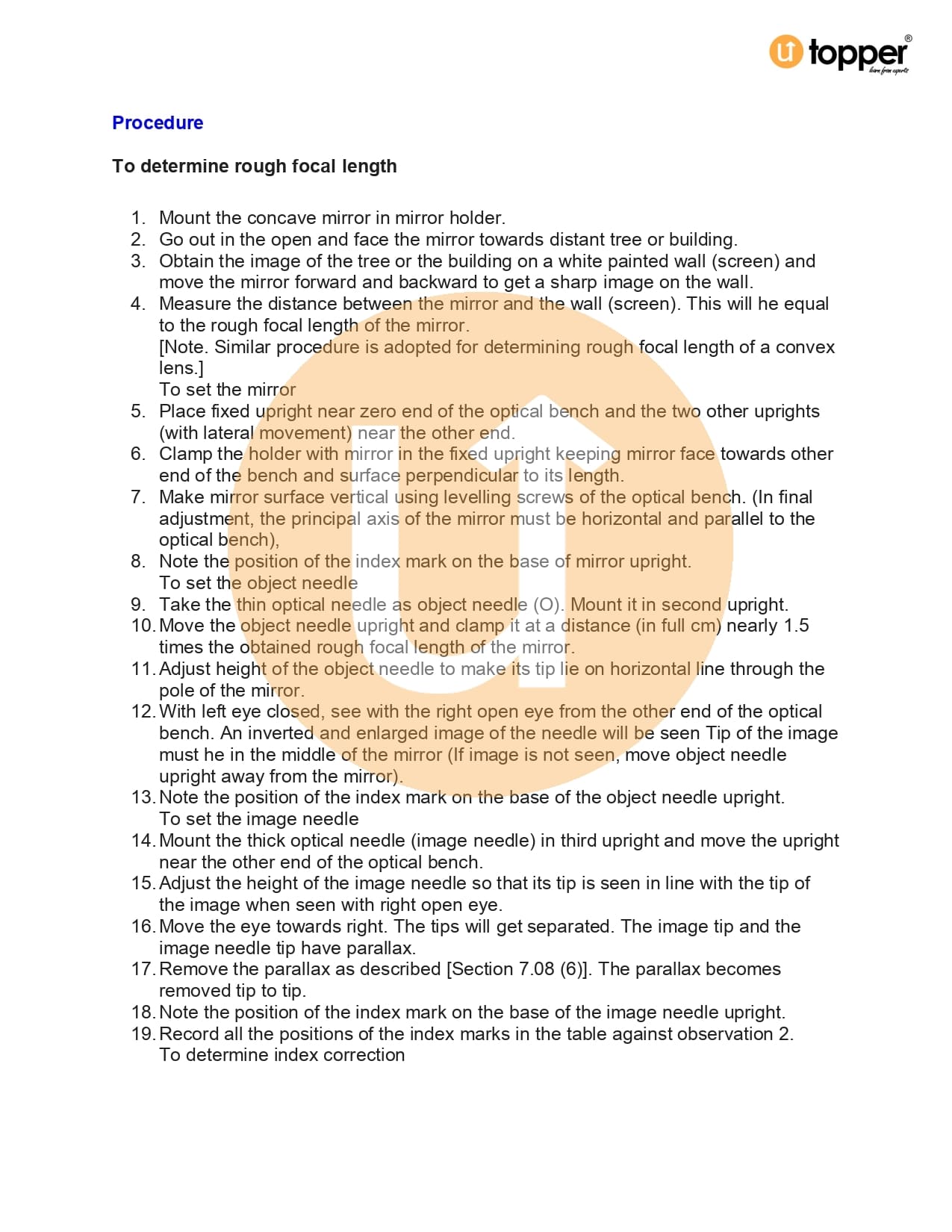 CBSE Class 12 Physics Lab Manual 7.1 – To find the value of v for different values of u in case of a concave mirror and to find the focal length