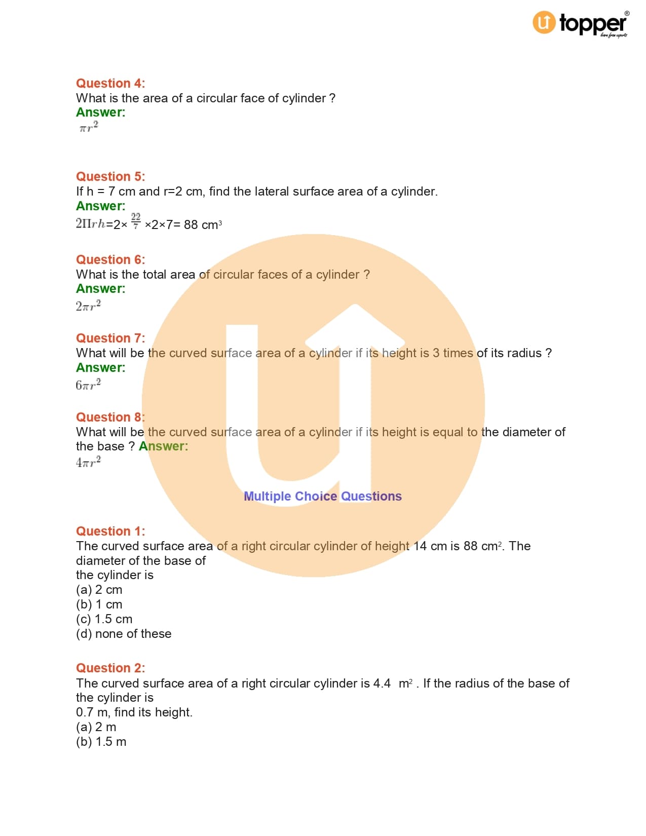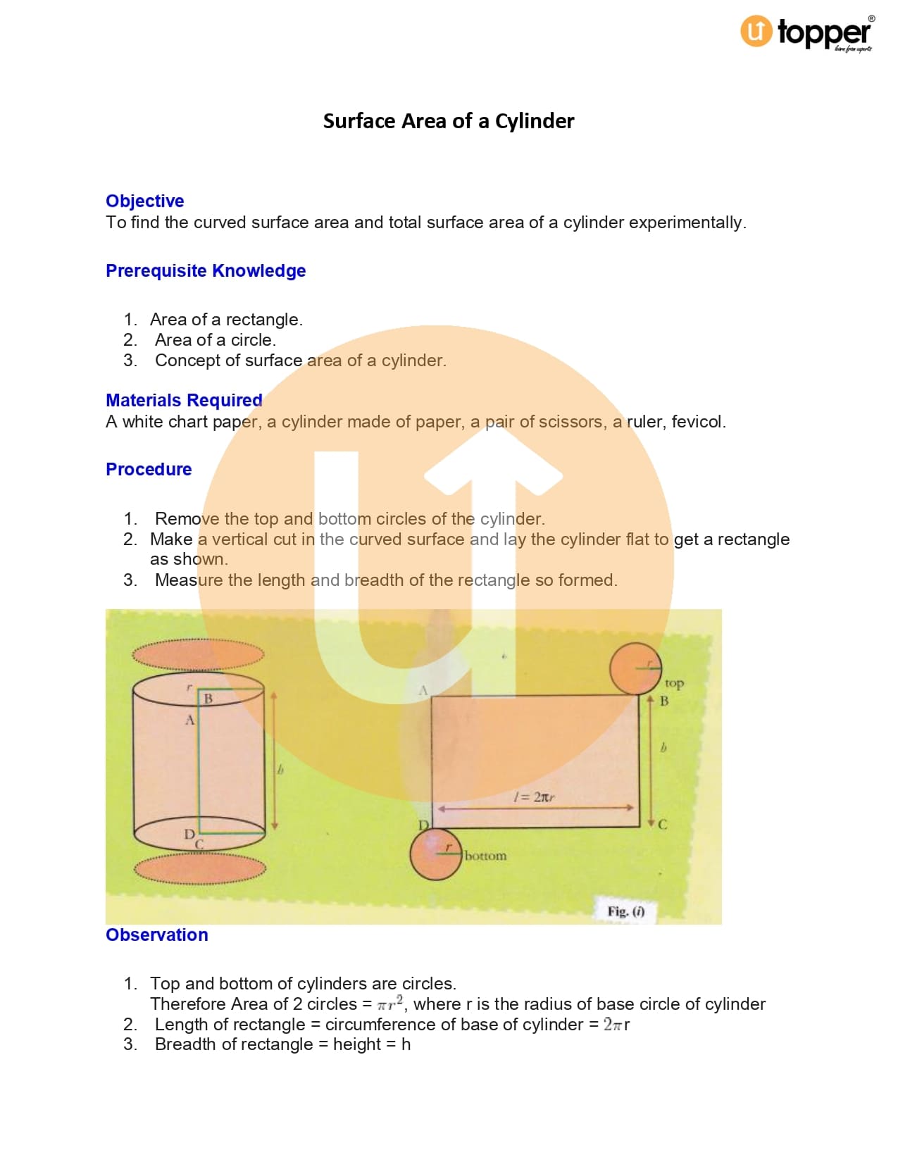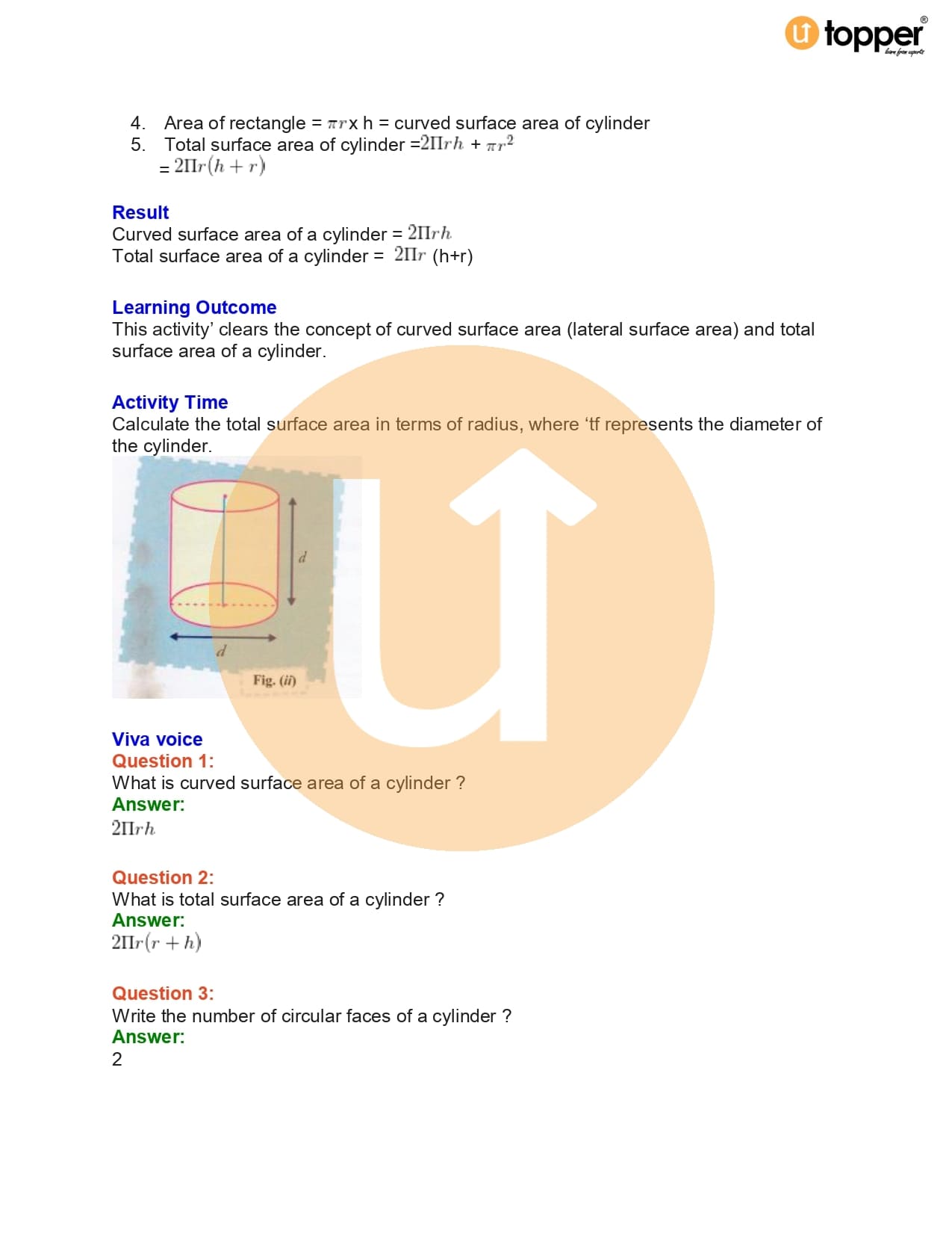 CBSE Class 10 Maths Lab Manual Activity 18 – Surface Area of a Cylinder