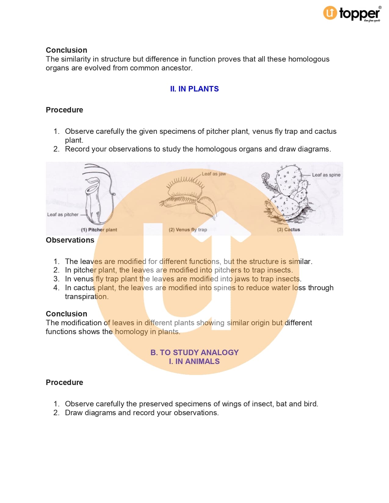 Experiment 5 – Homology and Analogy of Plants and Animals