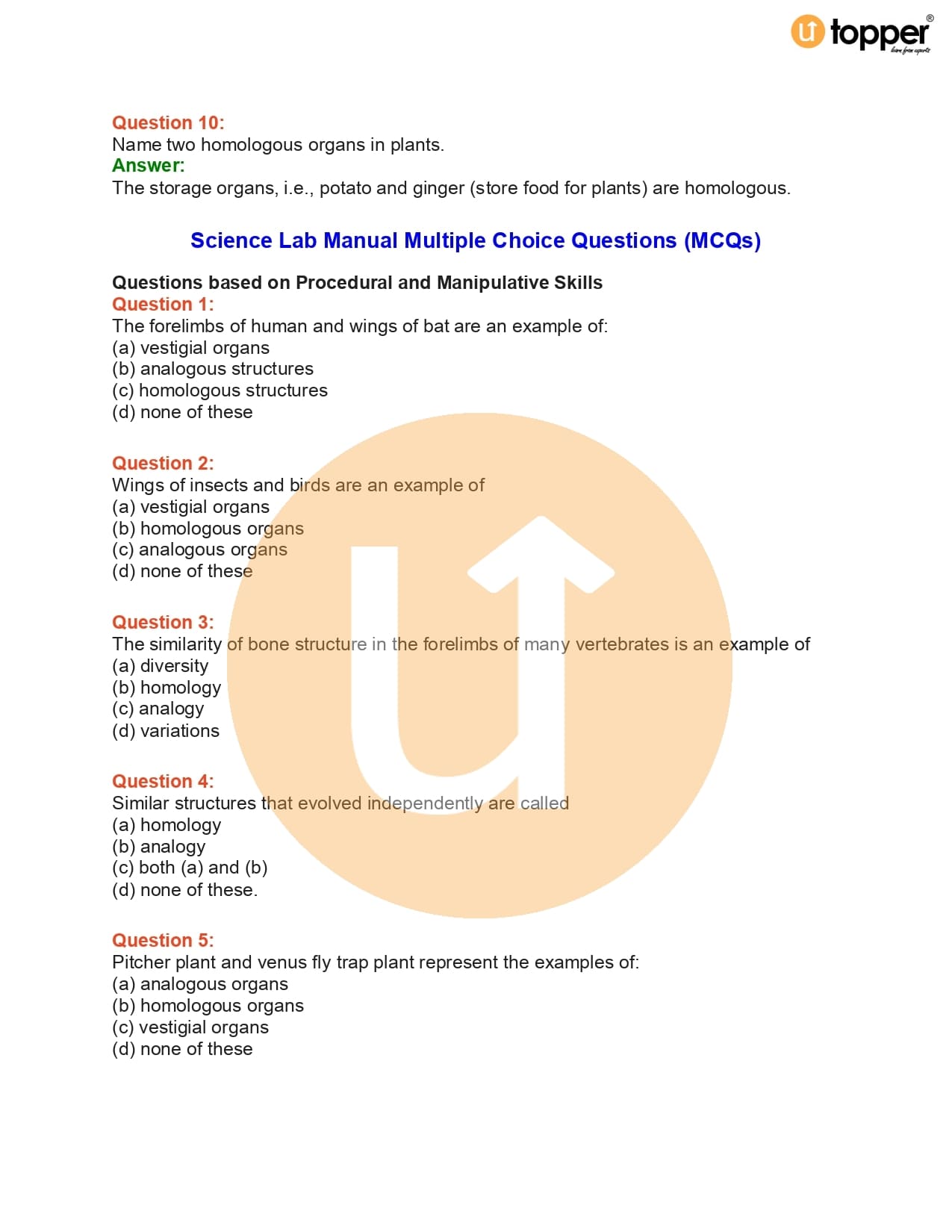 CBSE Class 10 Science Lab Manual 19 – Homology and Analogy of Plants and Animals
