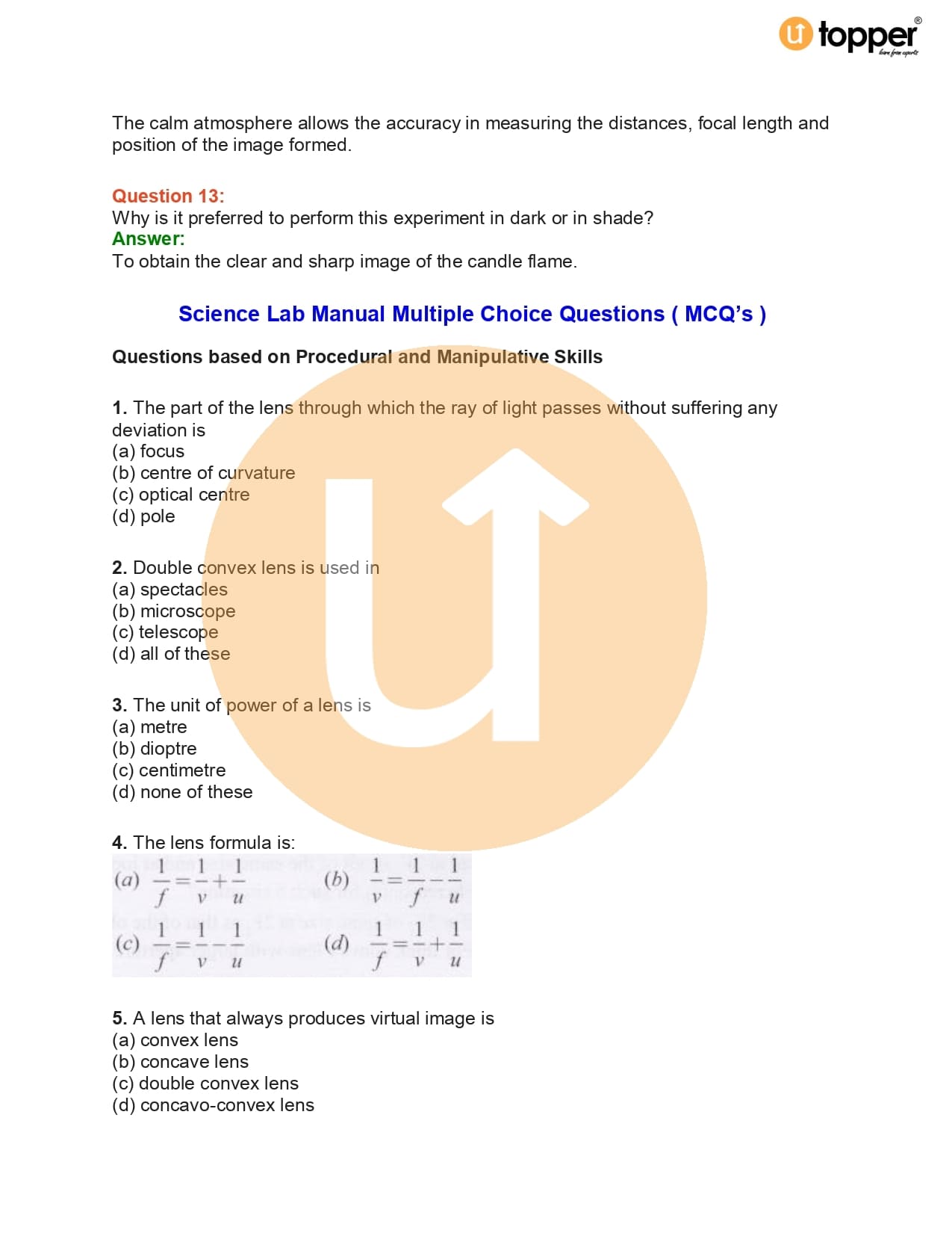 CBSE Class 10 Physics Lab Manual Chapterwise Download Pdf