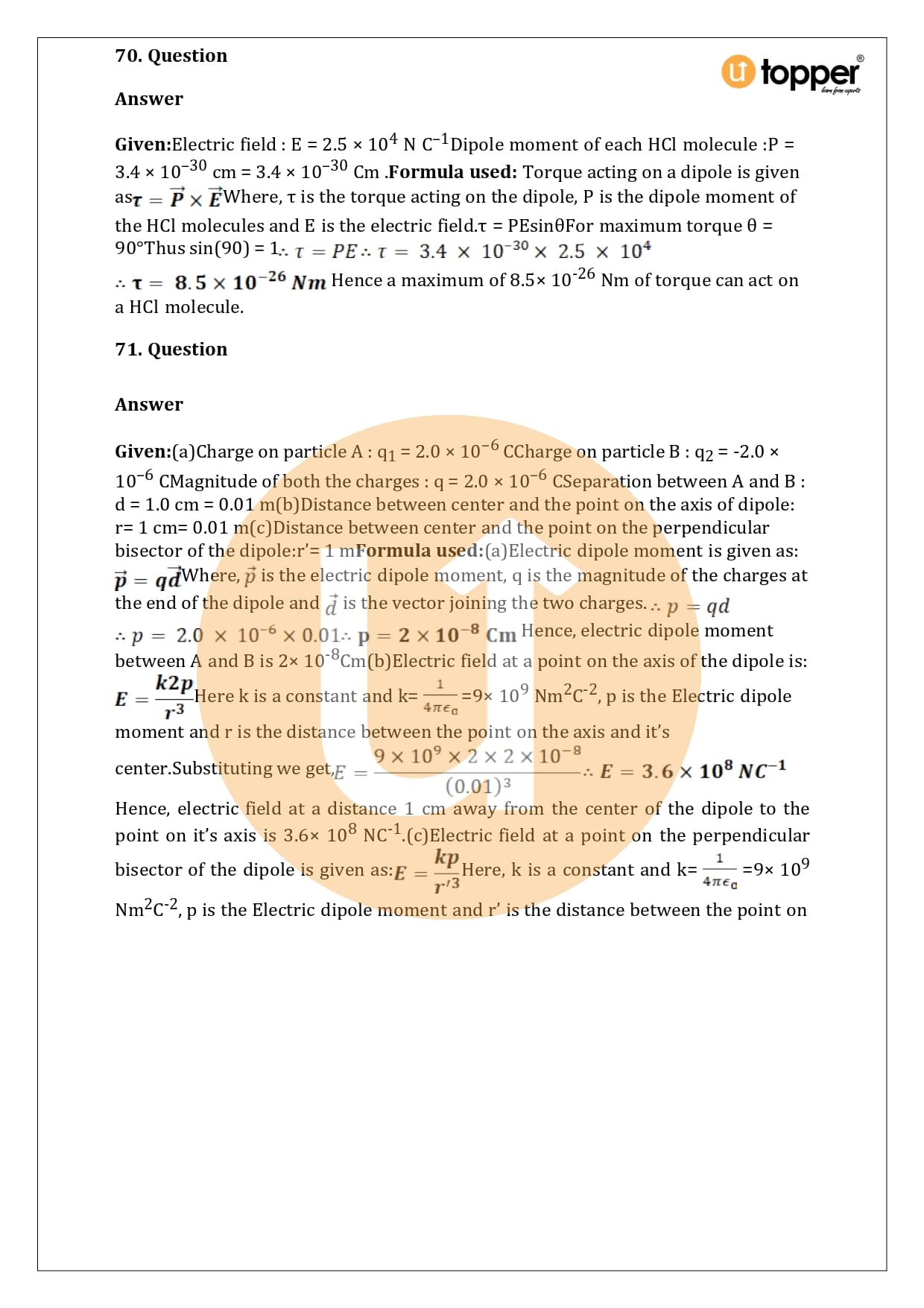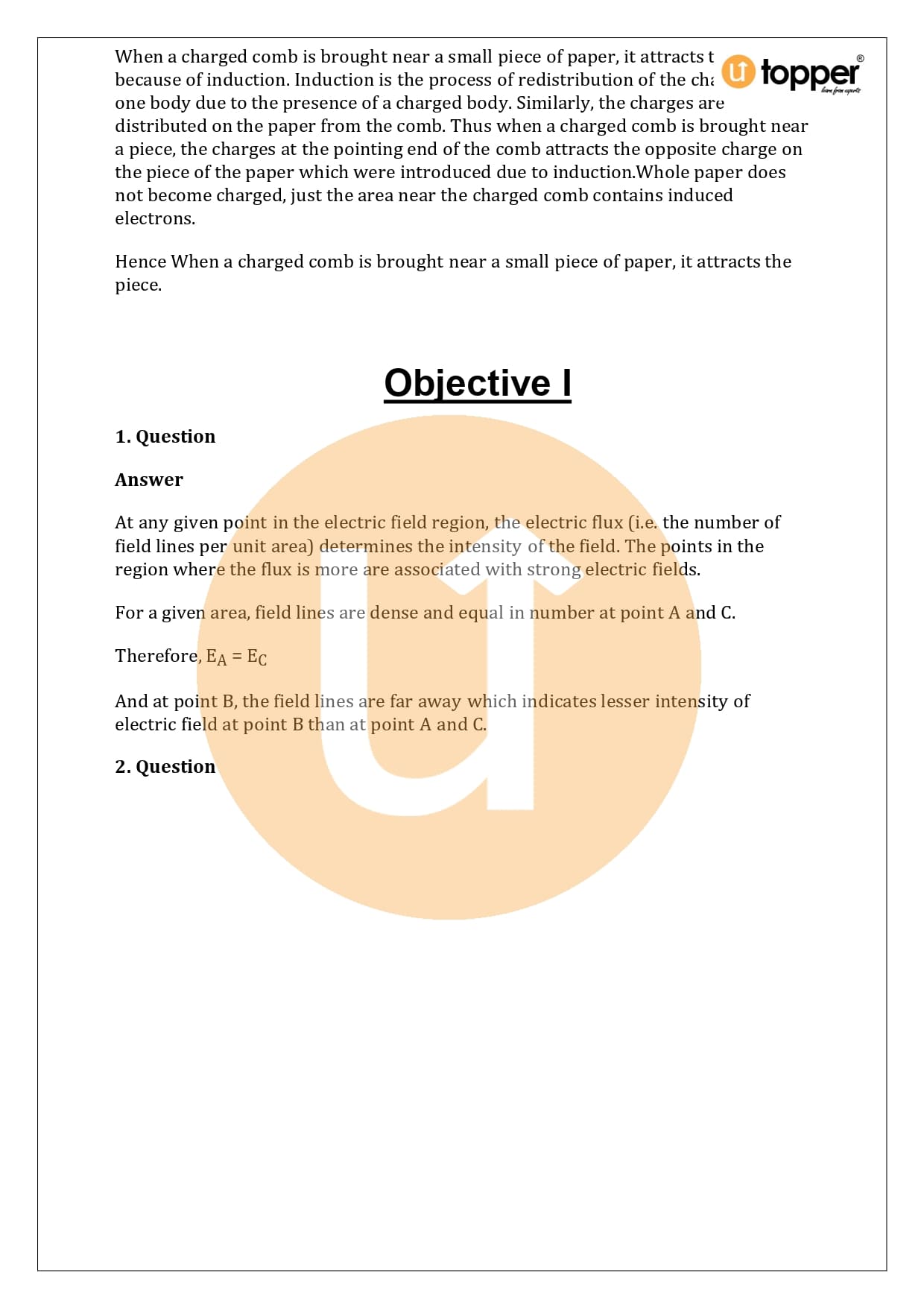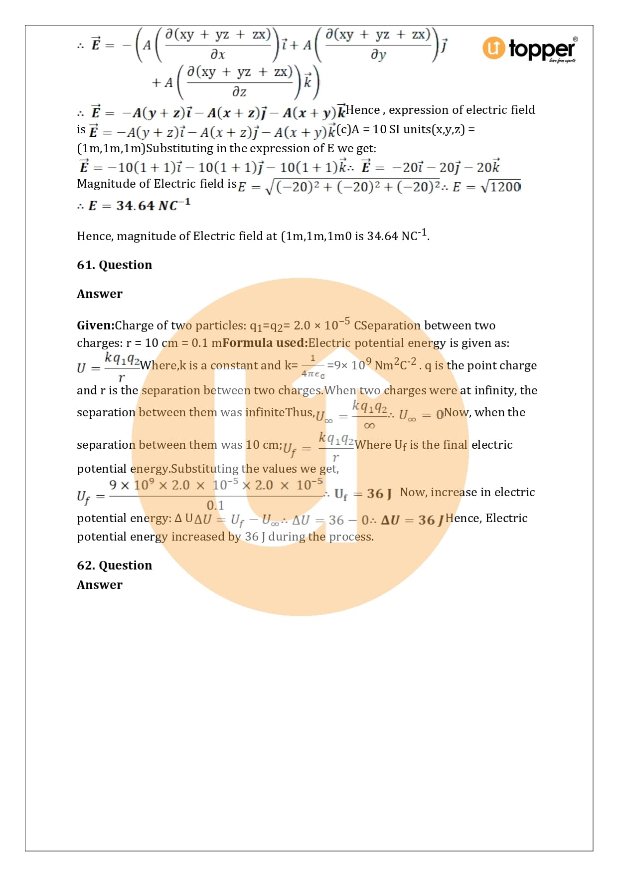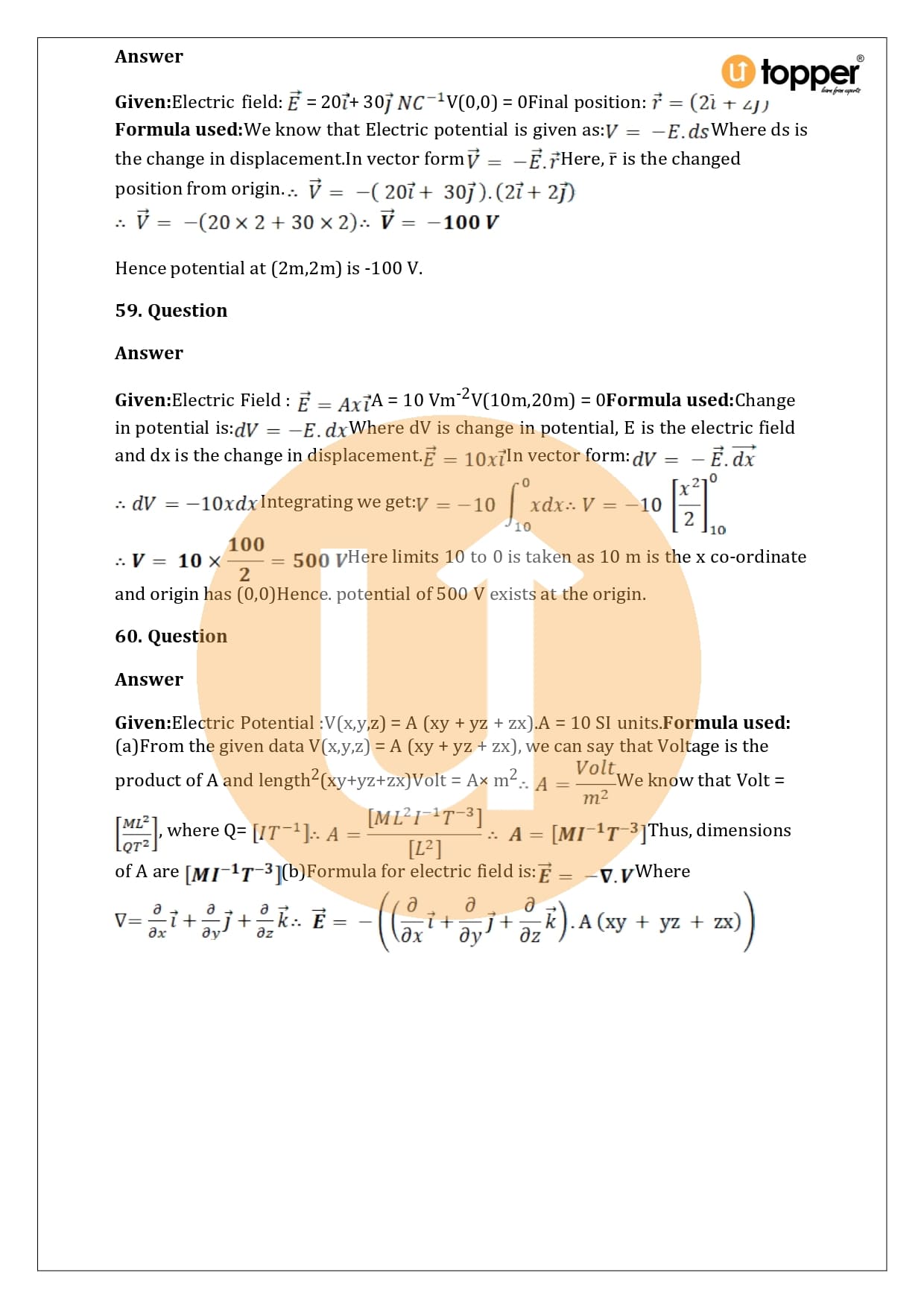 Here is a pdf of HC Verma Class 12 Solutions Volume 2 Chapter 29: Electric Field and Potential