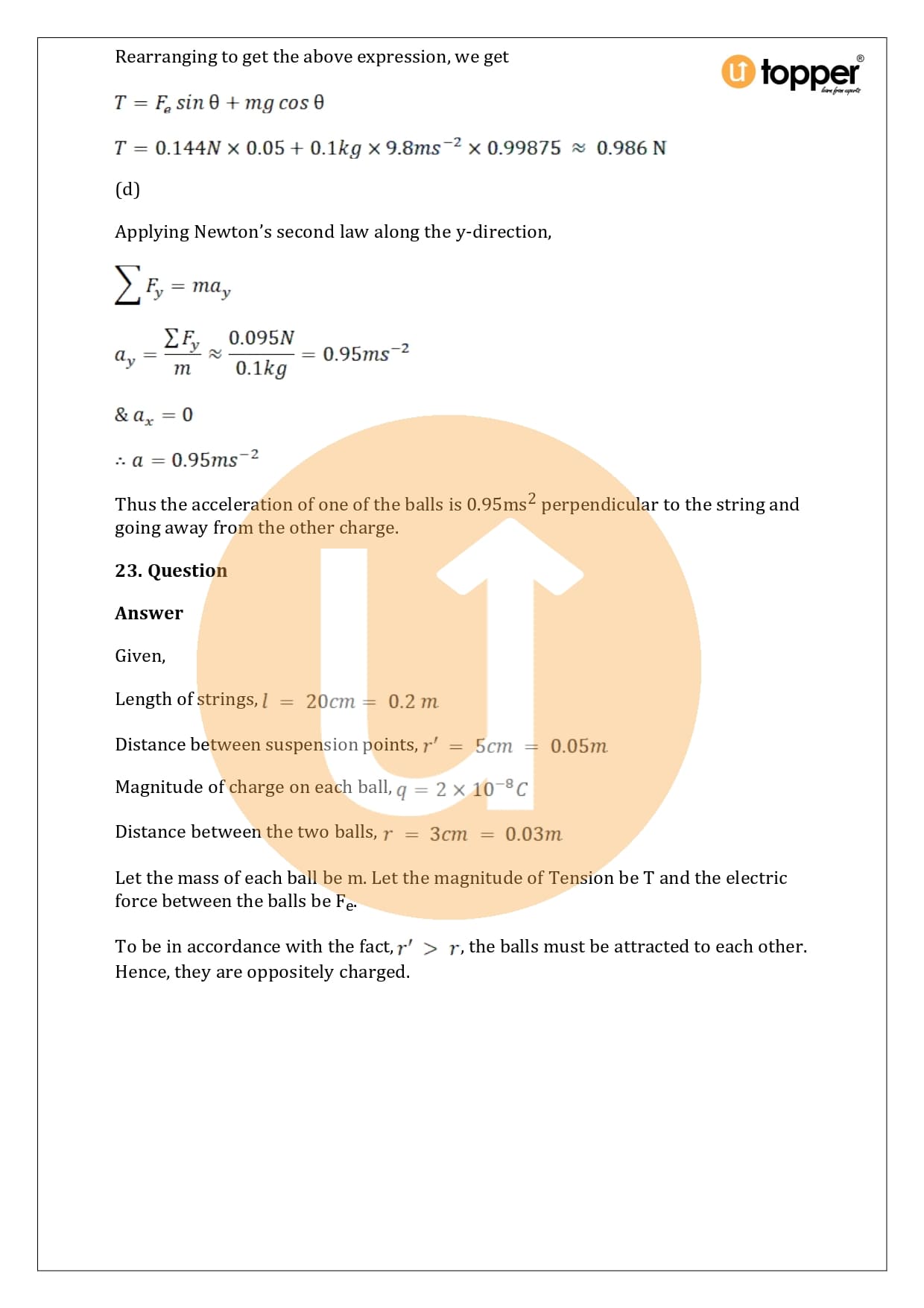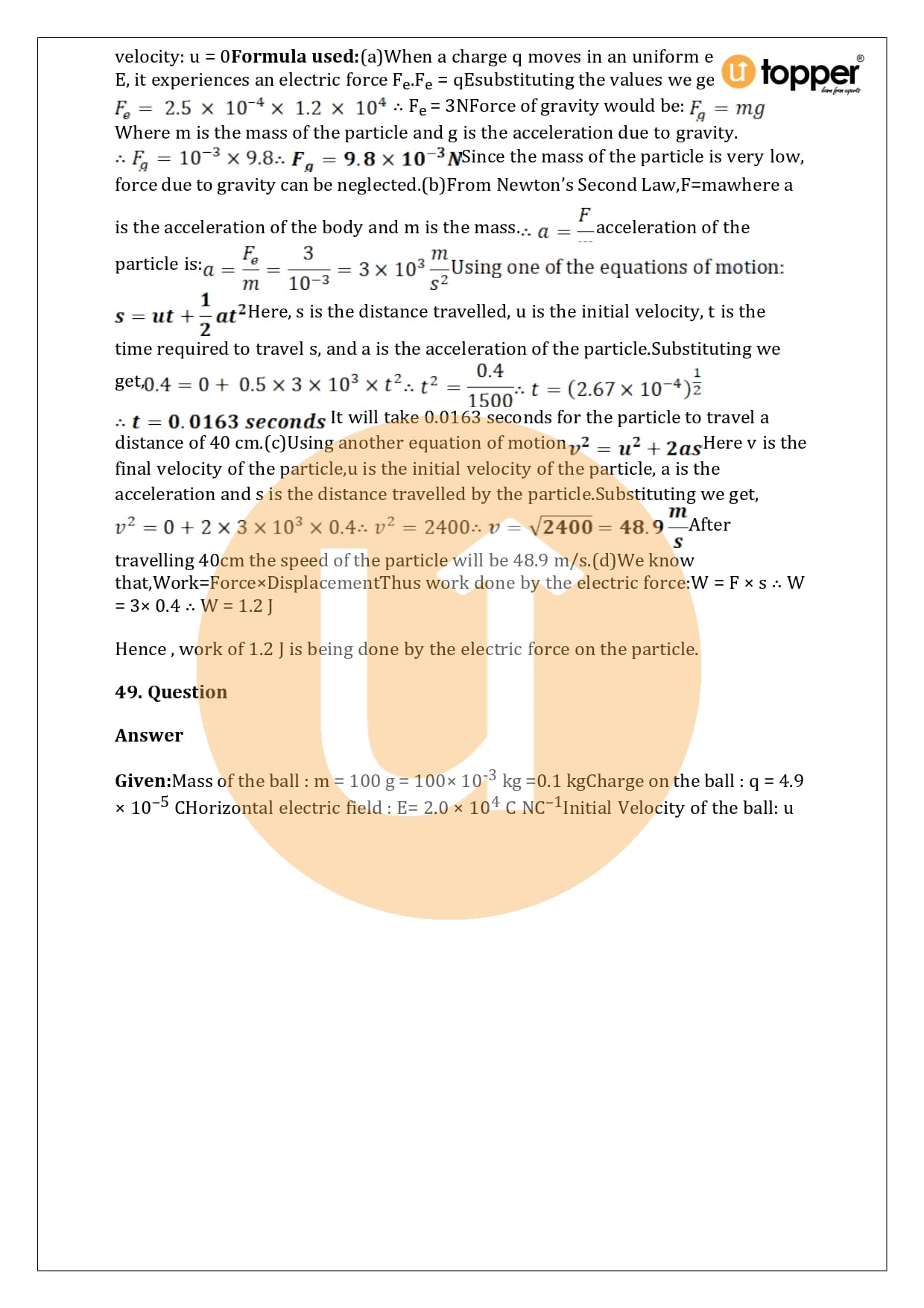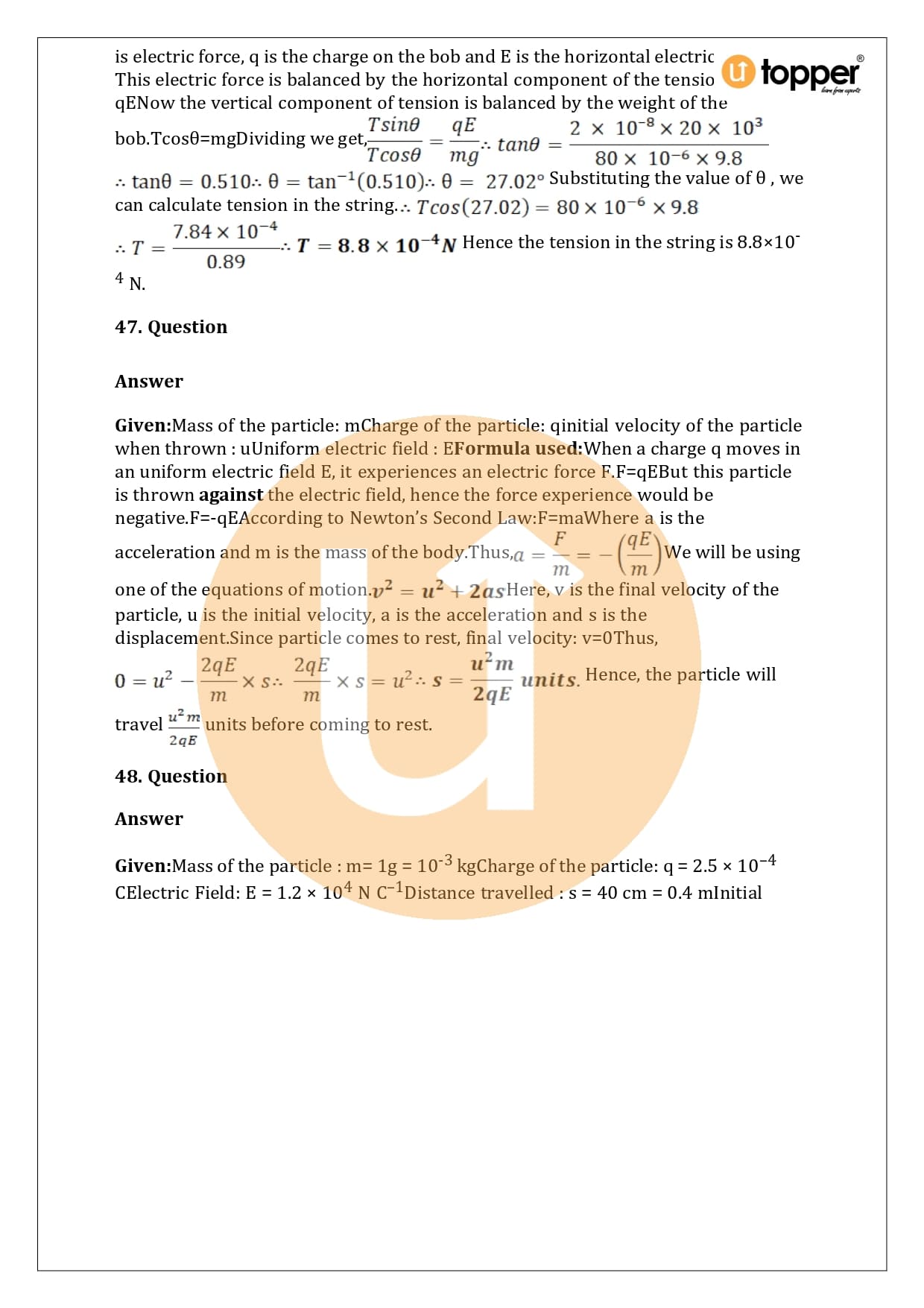 Here is a pdf of HC Verma Class 12 Solutions Volume 2 Chapter 29: Electric Field and Potential