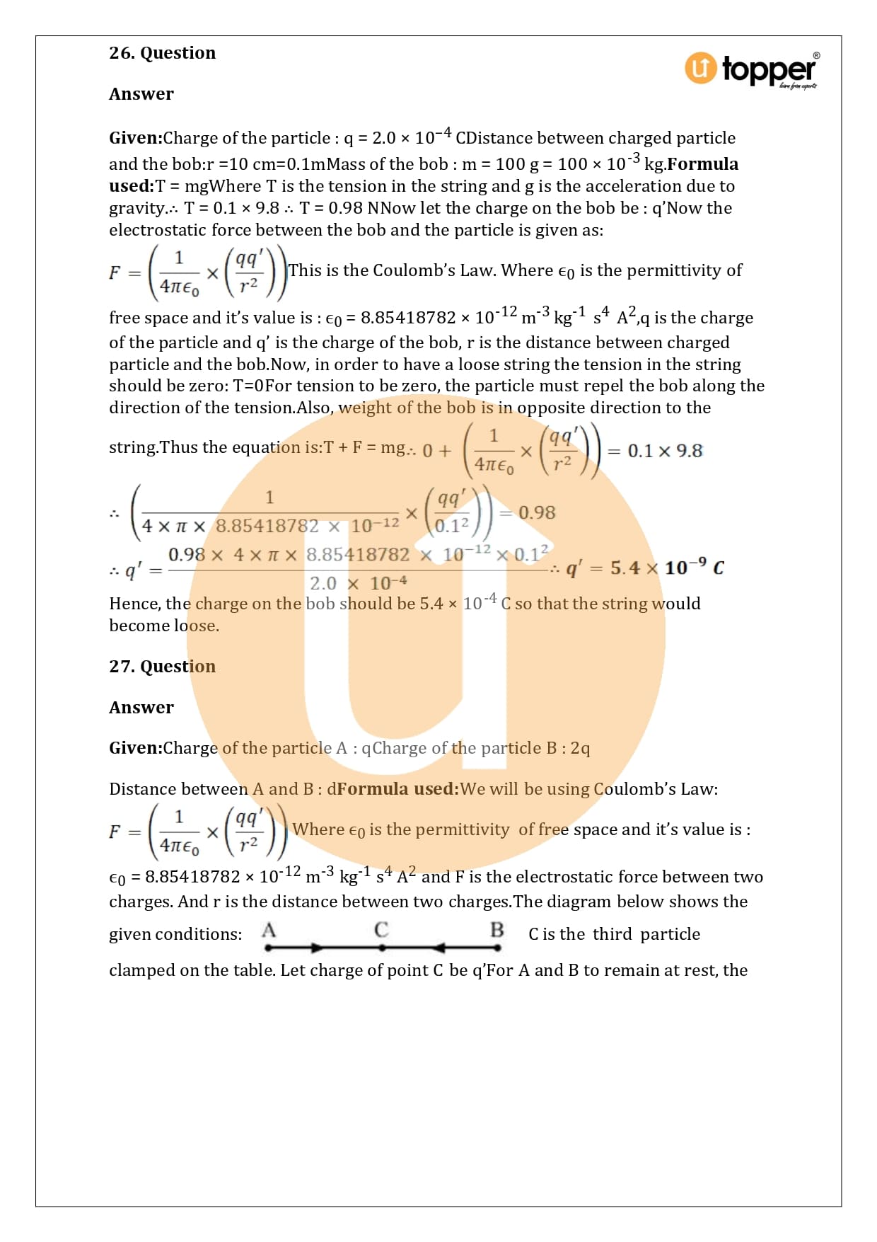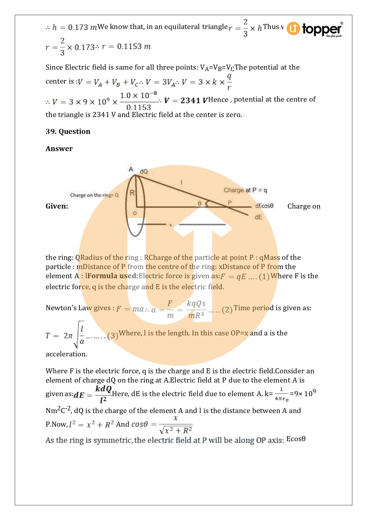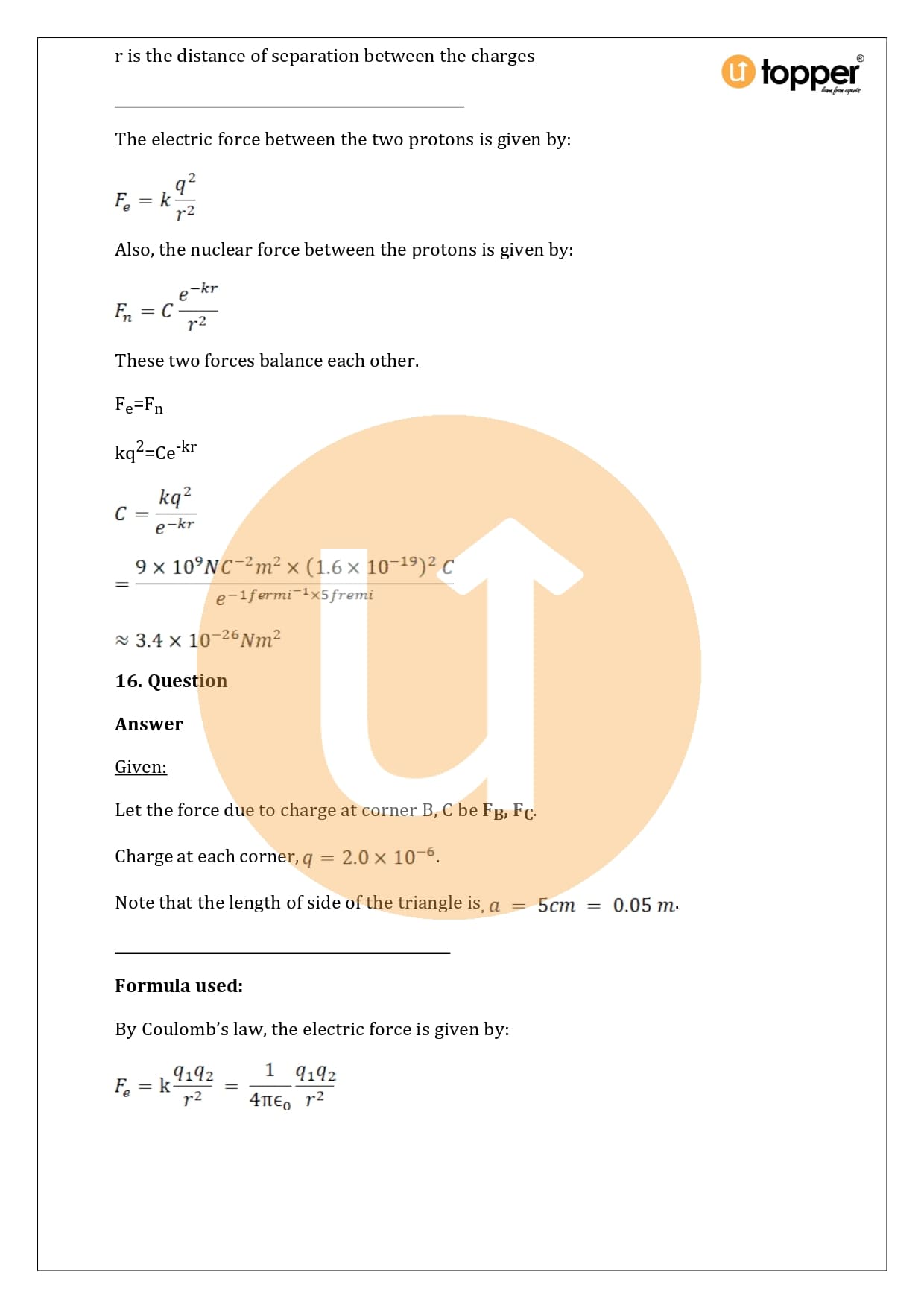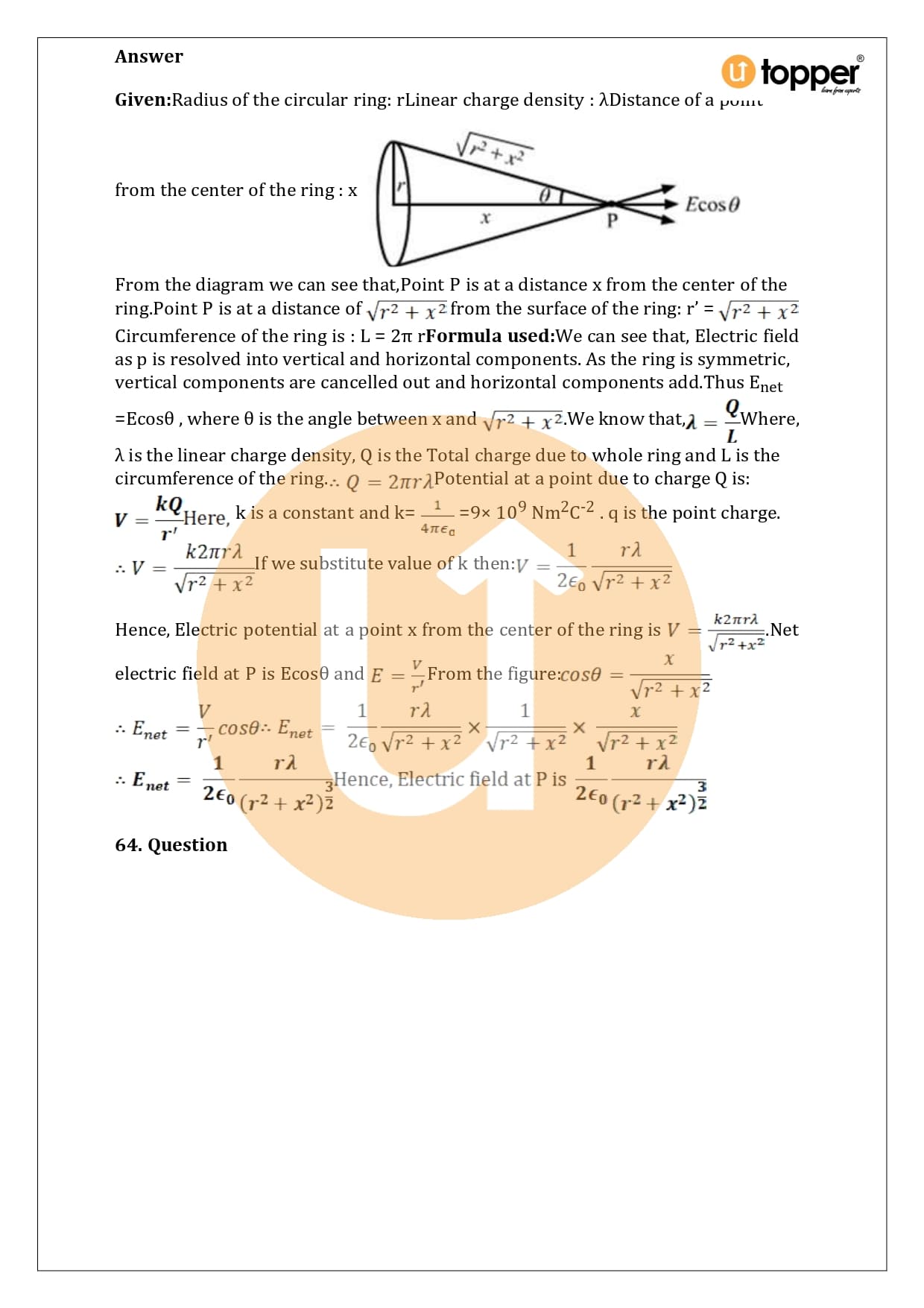 Here is a pdf of HC Verma Class 12 Solutions Volume 2 Chapter 29: Electric Field and Potential