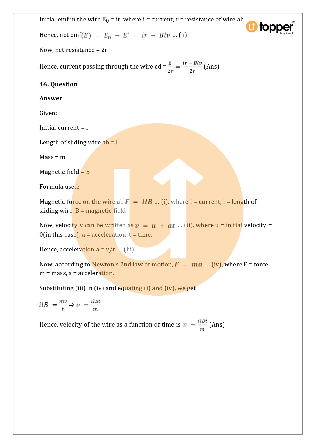 Here is a pdf of HC Verma Solutions Class 12 Volume 2 Chapter 38: Electromagnetic Induction