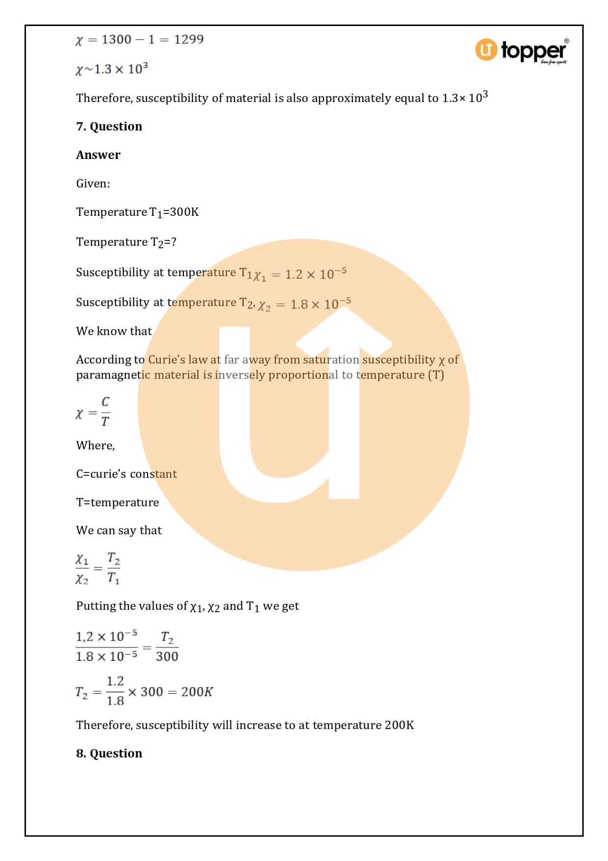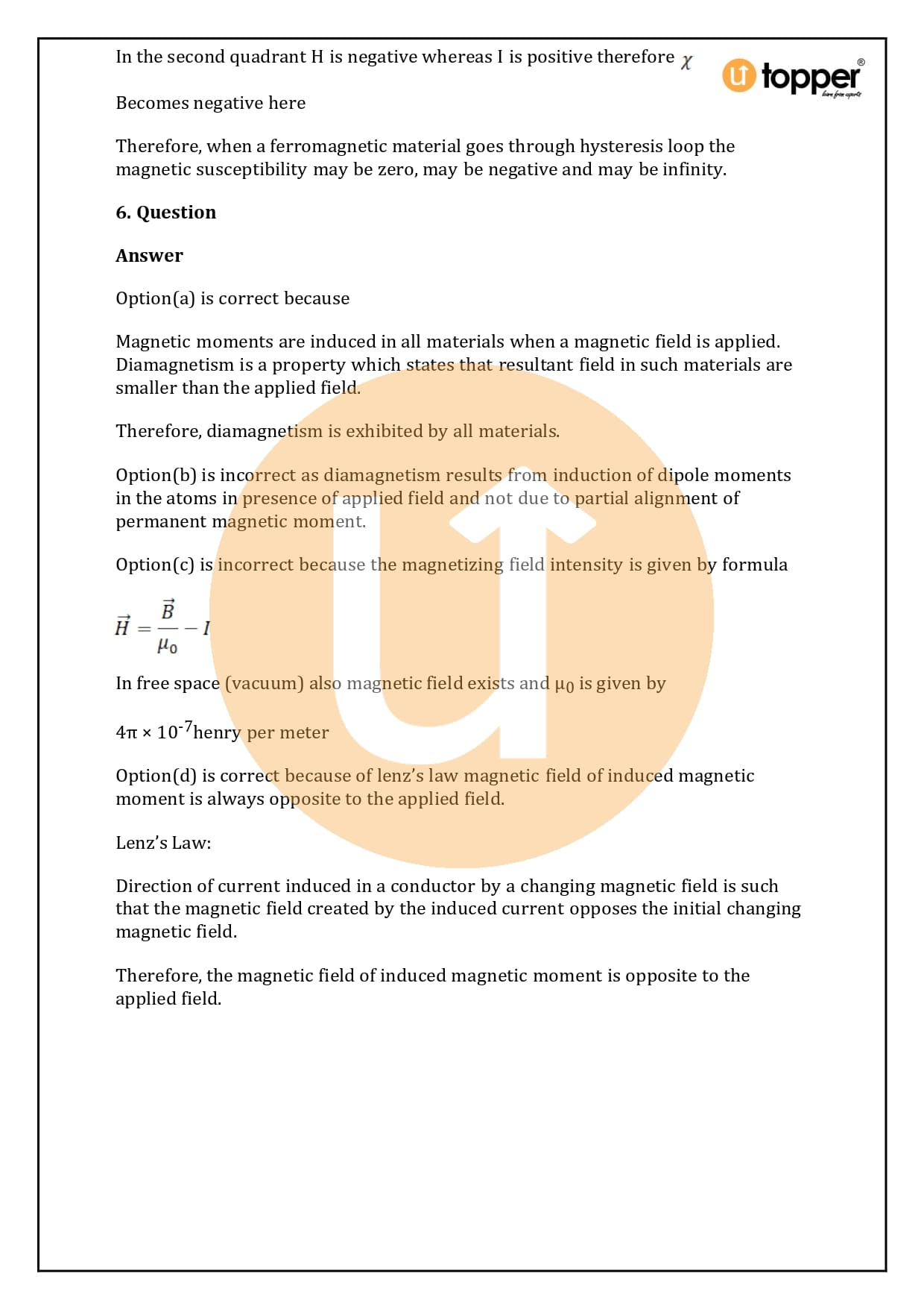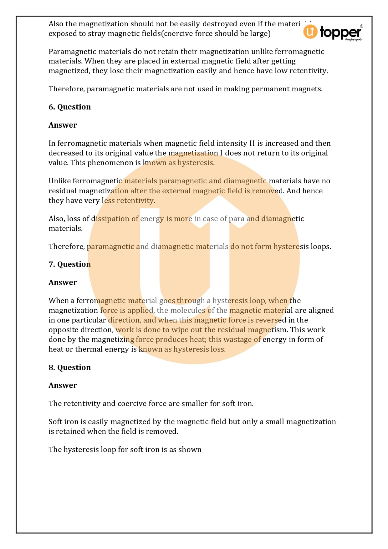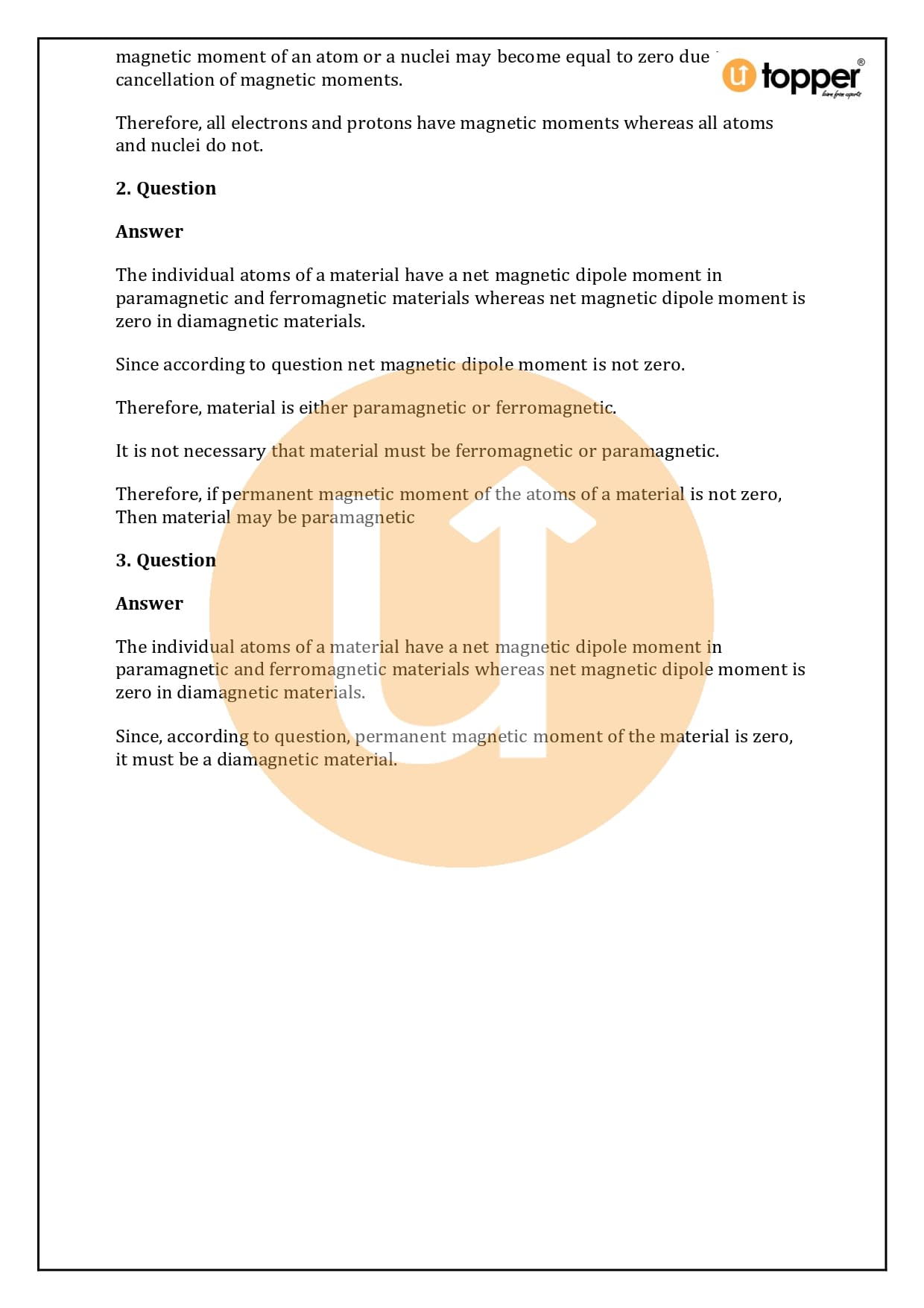 This page has detailed, step-by-step explanations of every question in HC Verma Class 12 Physics Solutions Chapter 37. For example, in the chapter “Magnetic Properties of Matter” which is the important chapter of Volume 2 of HC Verma’s concept of physics for jee and neet, all of the questions are solved and the steps are explained to help you learn. Utopper is a smart way for students to go over the whole Physics Syllabus again and again. The questions and answers help them study in a way that will help them do well on their exams.