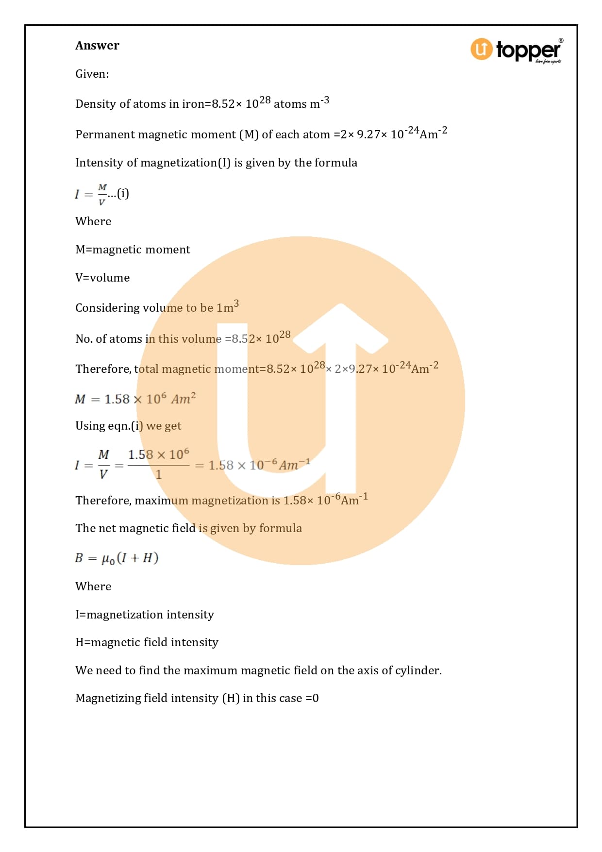 In the HC Verma Class 12 Physics Solutions Chapter 37 “Magnetic Properties of Matter” concept of physics, all of the questions are solved and the steps are explained to help you learn. On the Utopper website where students can get free Reference Book Solutions and other study materials like Revision notes, Sample papers, and Important Questions. Science will be easier to learn if you have access to HC Verma Solutions and solutions for other courses.