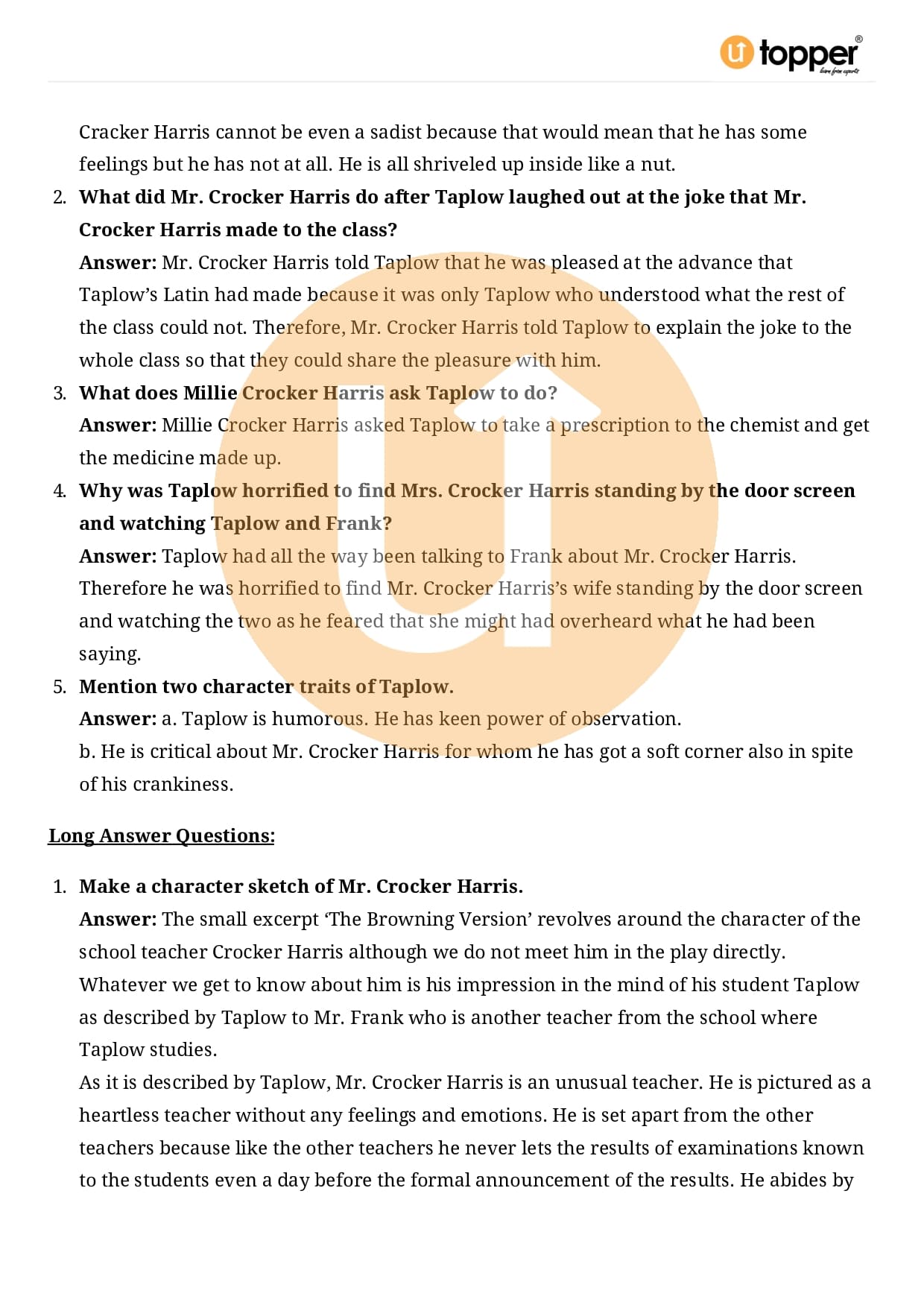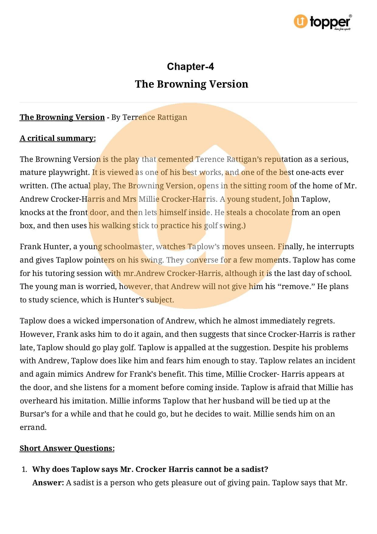 Class 11 English Hornbill Important Questions Chapter 5 Pdf – The Browning Version