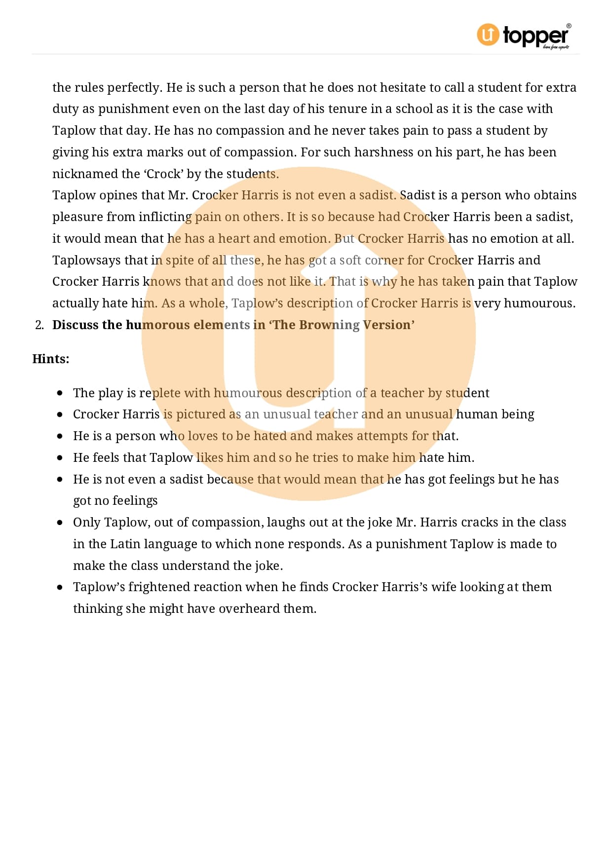 Class 11 English Hornbill Important Question CBSE Chapter 5 – The Browning Version