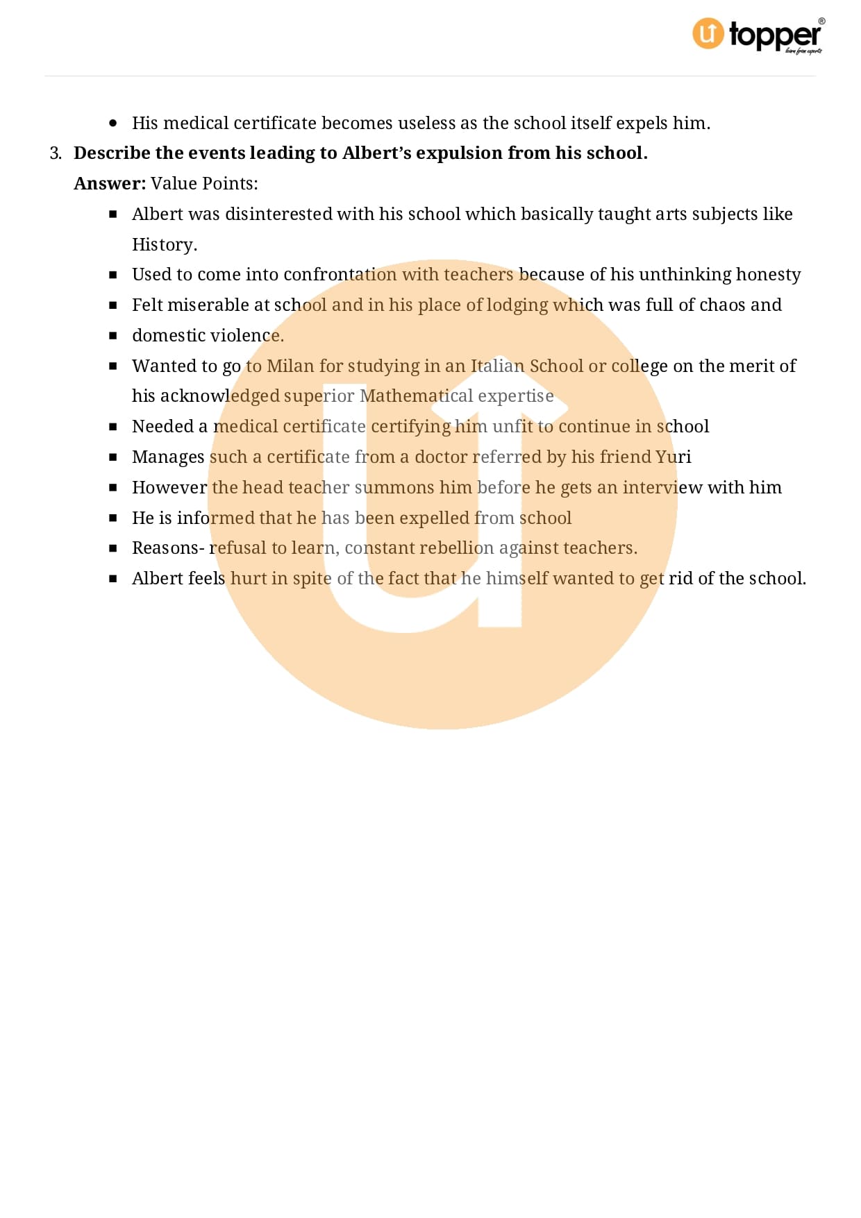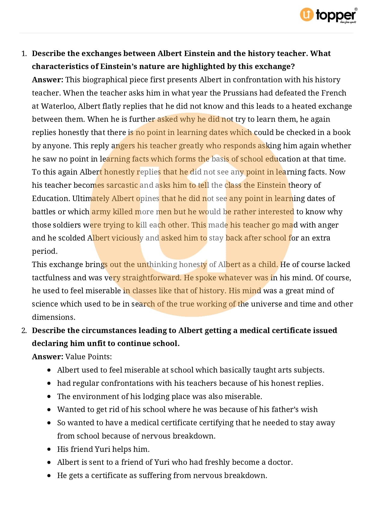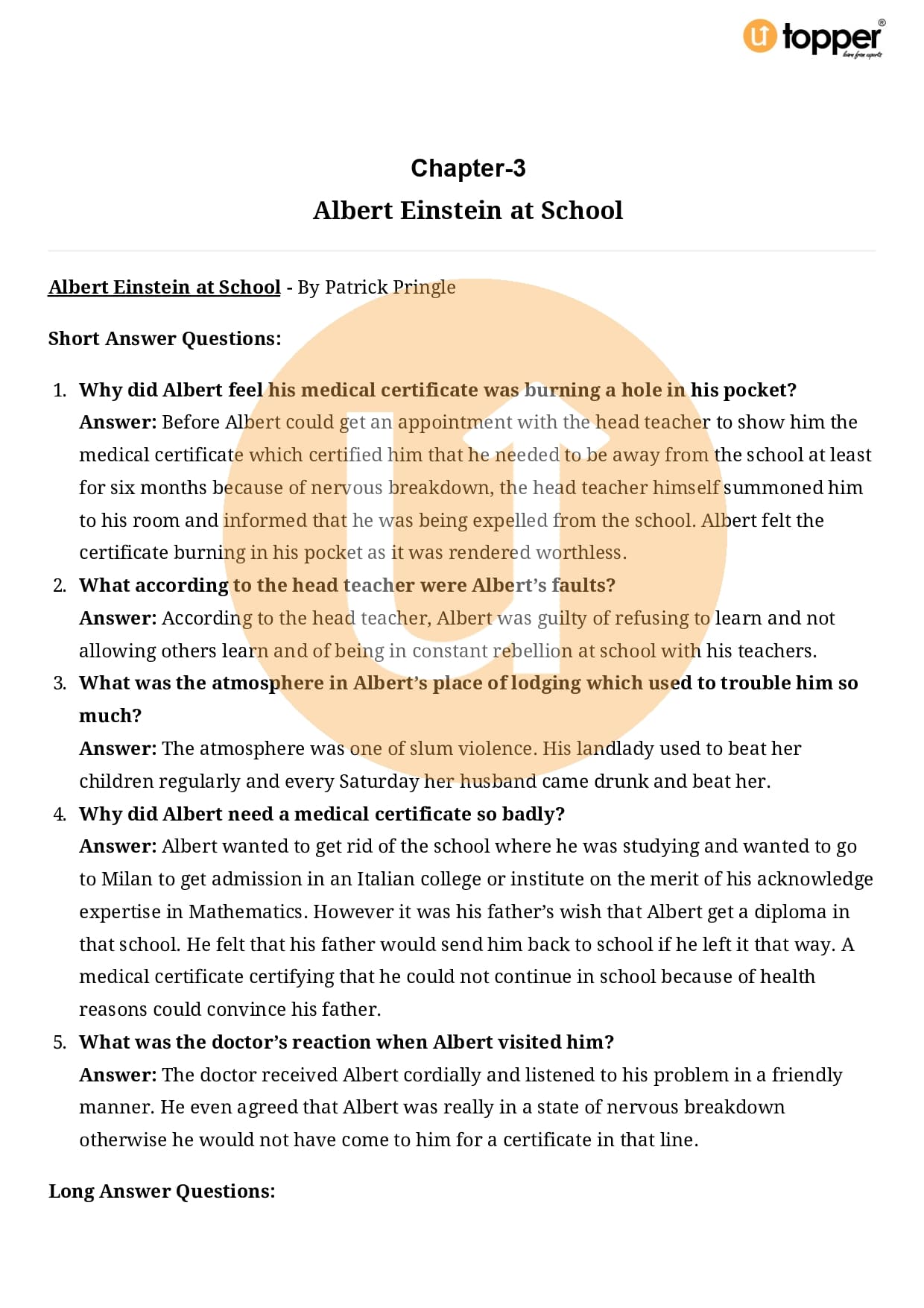 Class 11 English Snapshots Important Question CBSE Chapter 3 – Albert Einstein at School