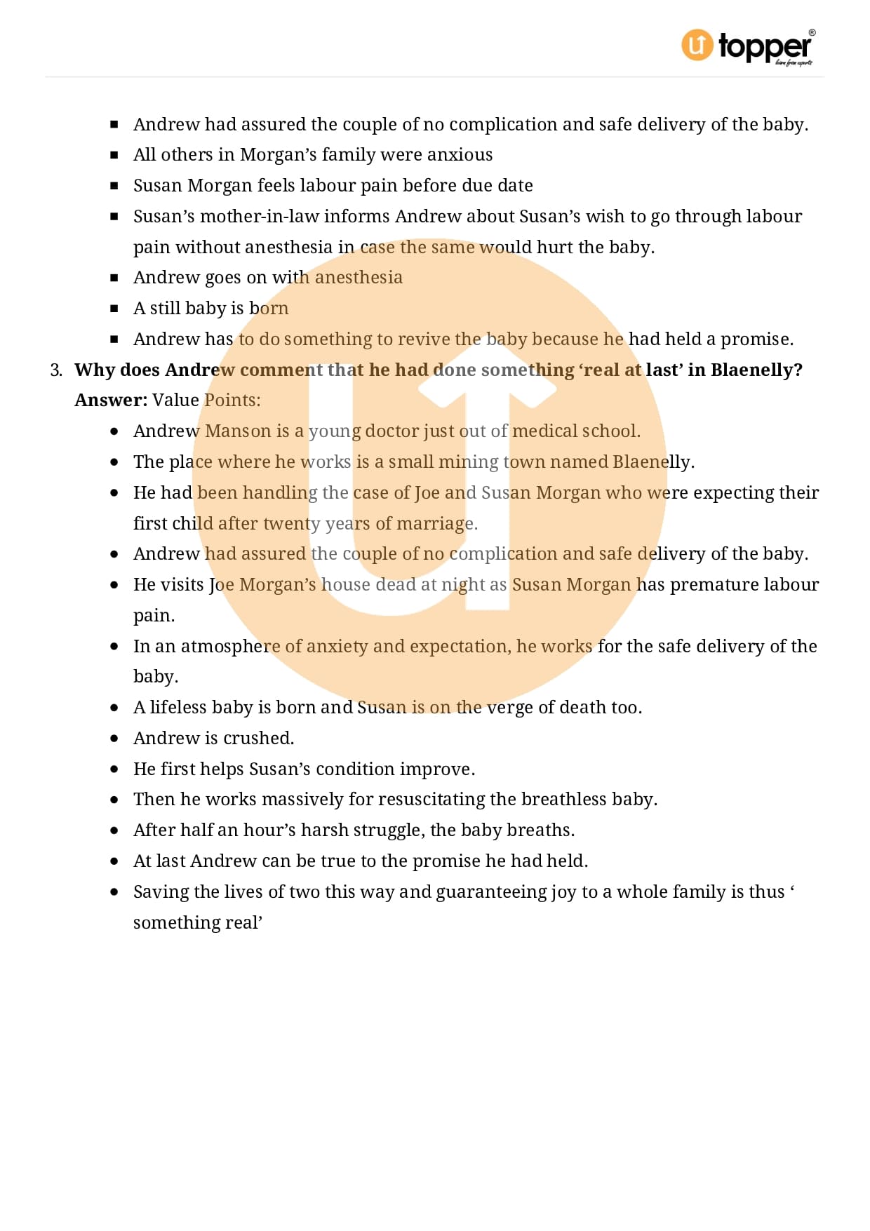 Class 11 English Snapshots Important Question CBSE Chapter 5 – Birth