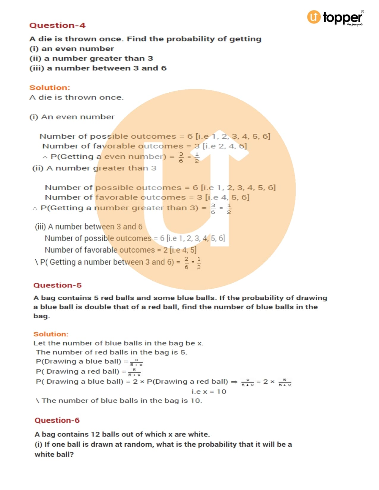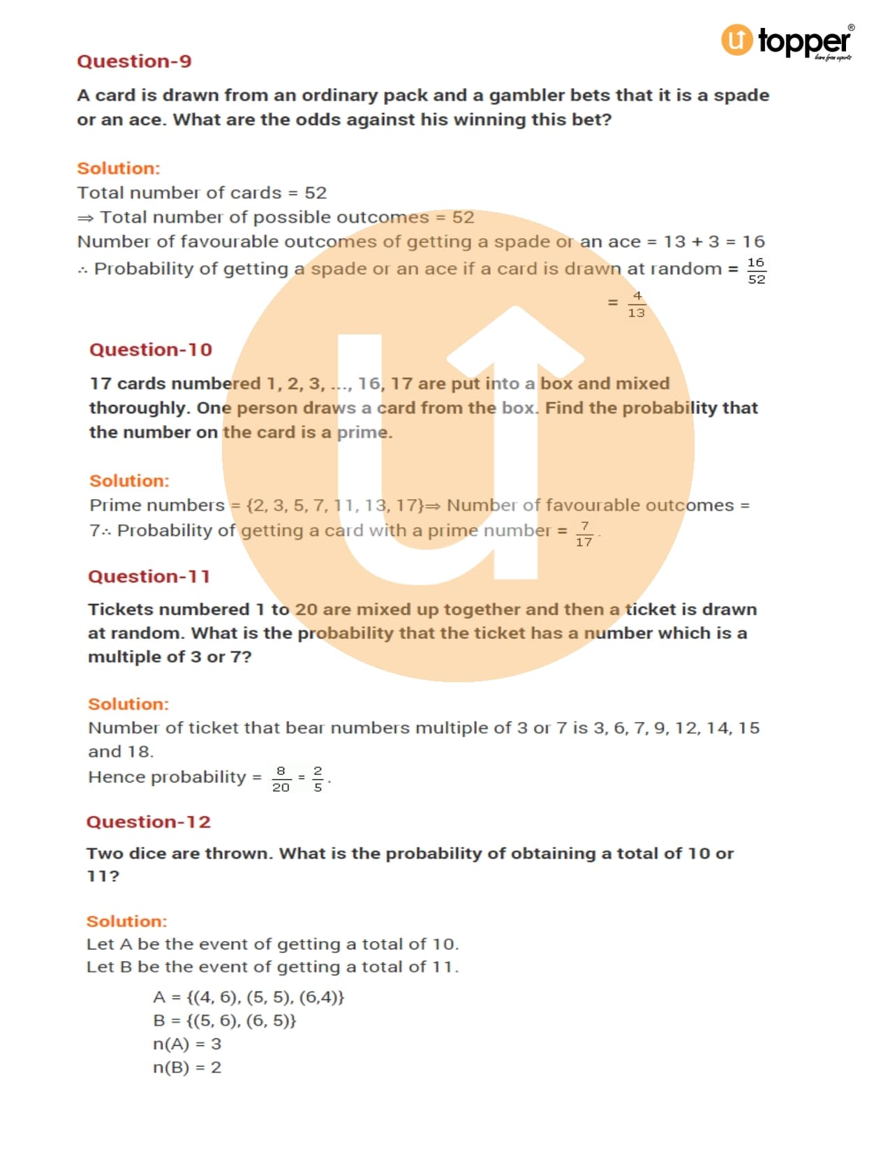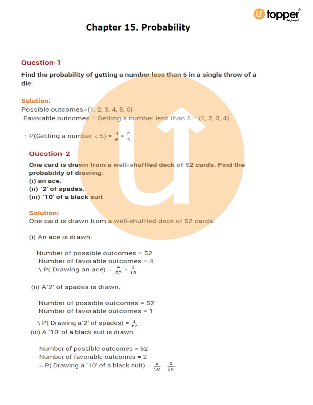 Class 10 Maths Important Question CBSE Chapter 15 – Probability