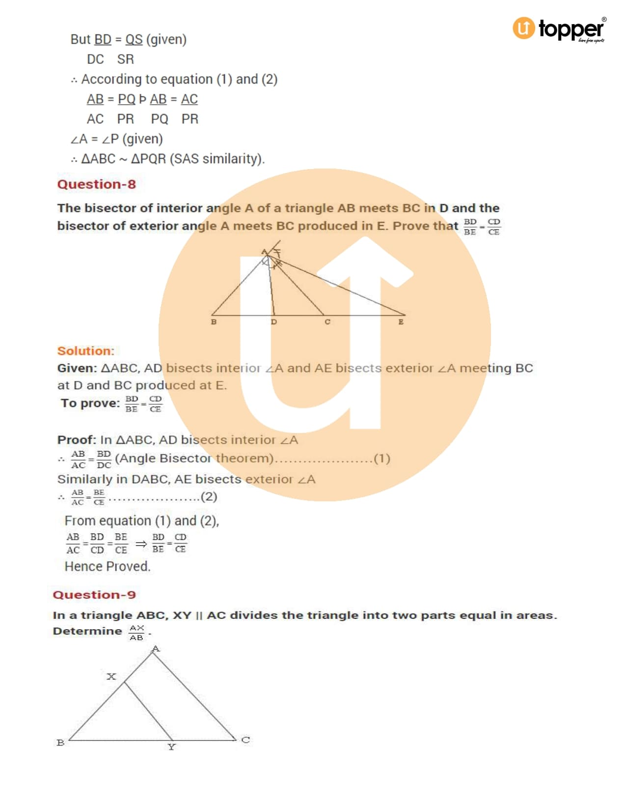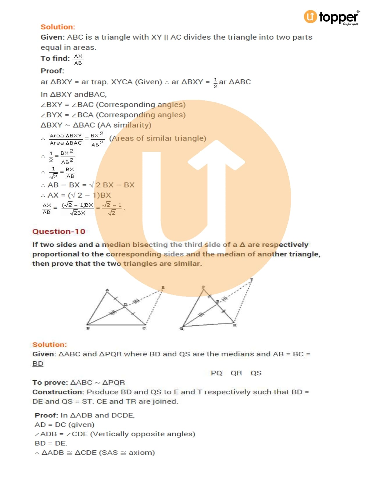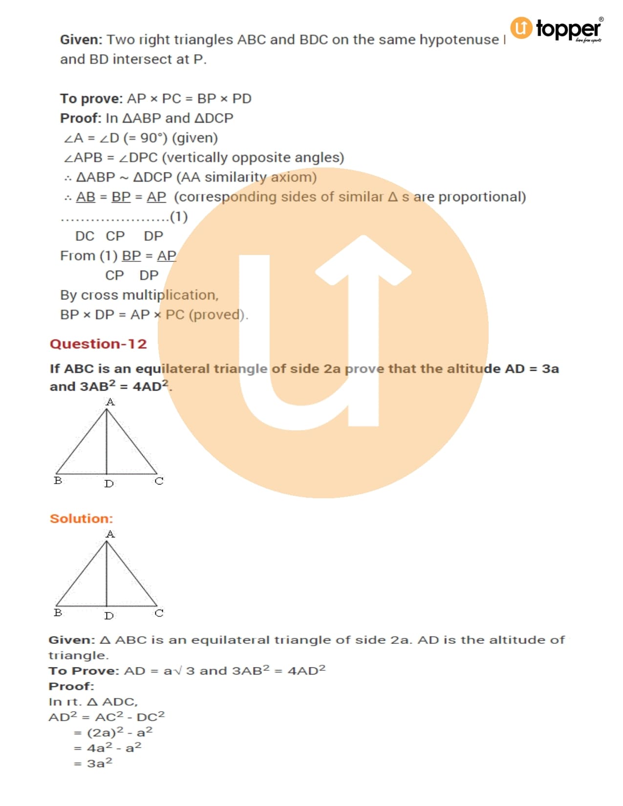 Class 10 Maths Important Question CBSE Chapter 6 – Triangles