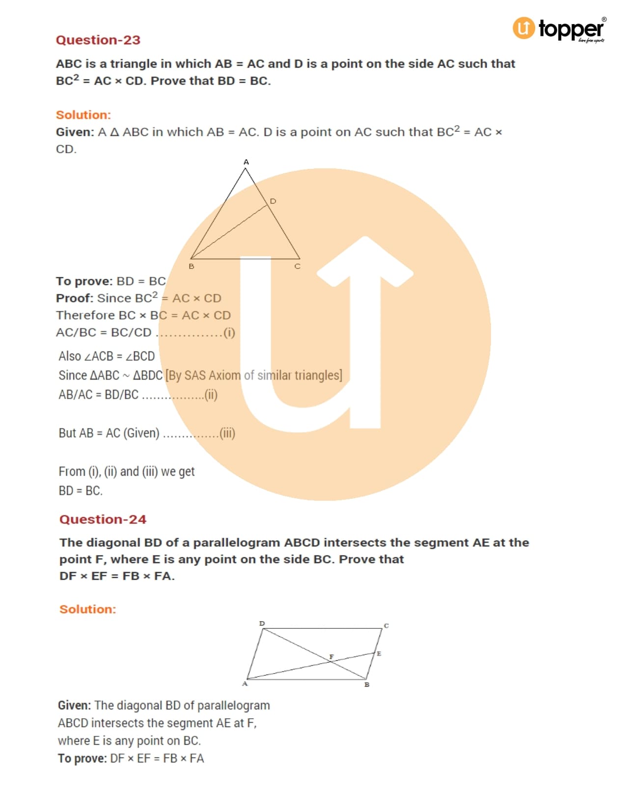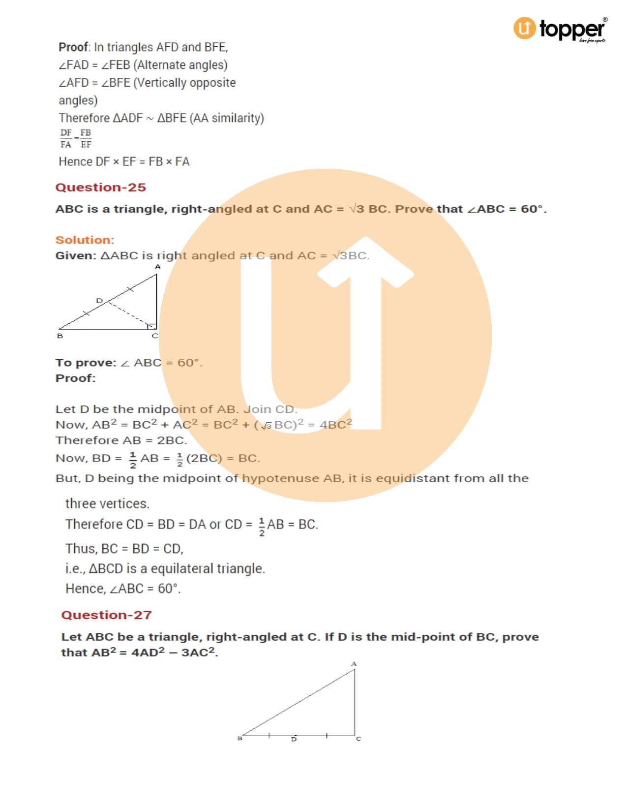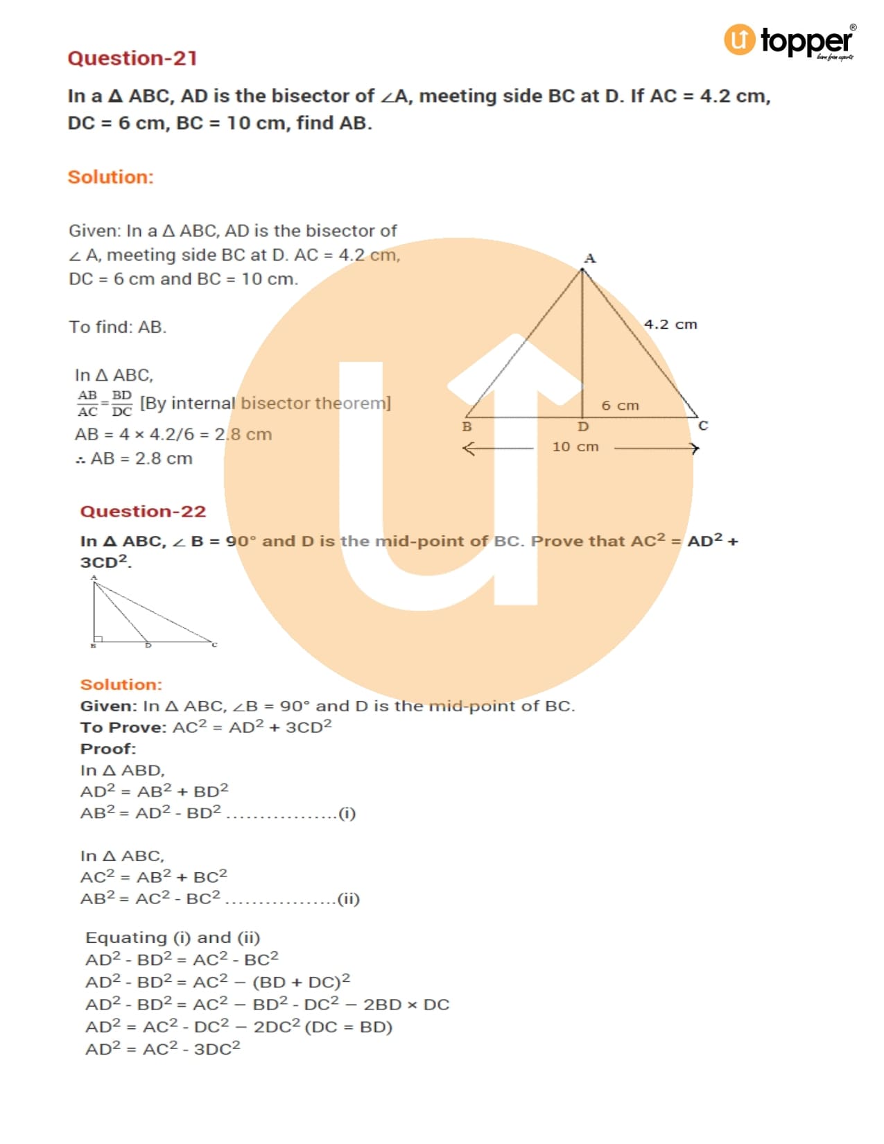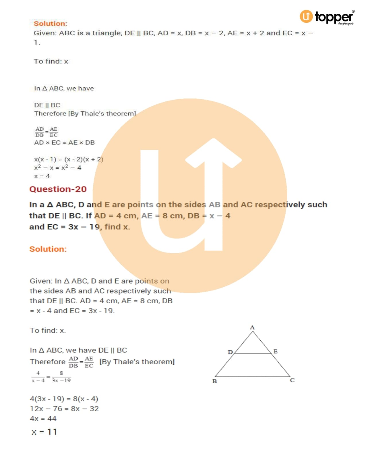 Class 10 Maths Important Question CBSE Chapter 6 – Triangles